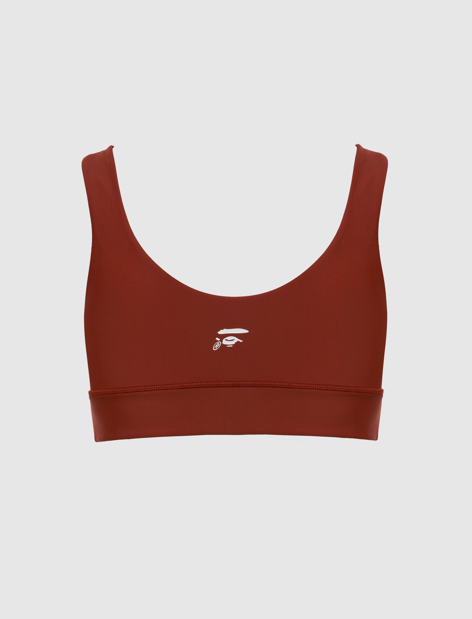 Tight-fit sport bra. Square neckline. Graphic logo text at front. Graphic logo print at back. Elasticized hem.