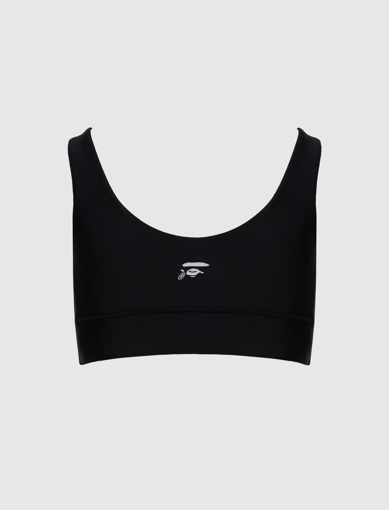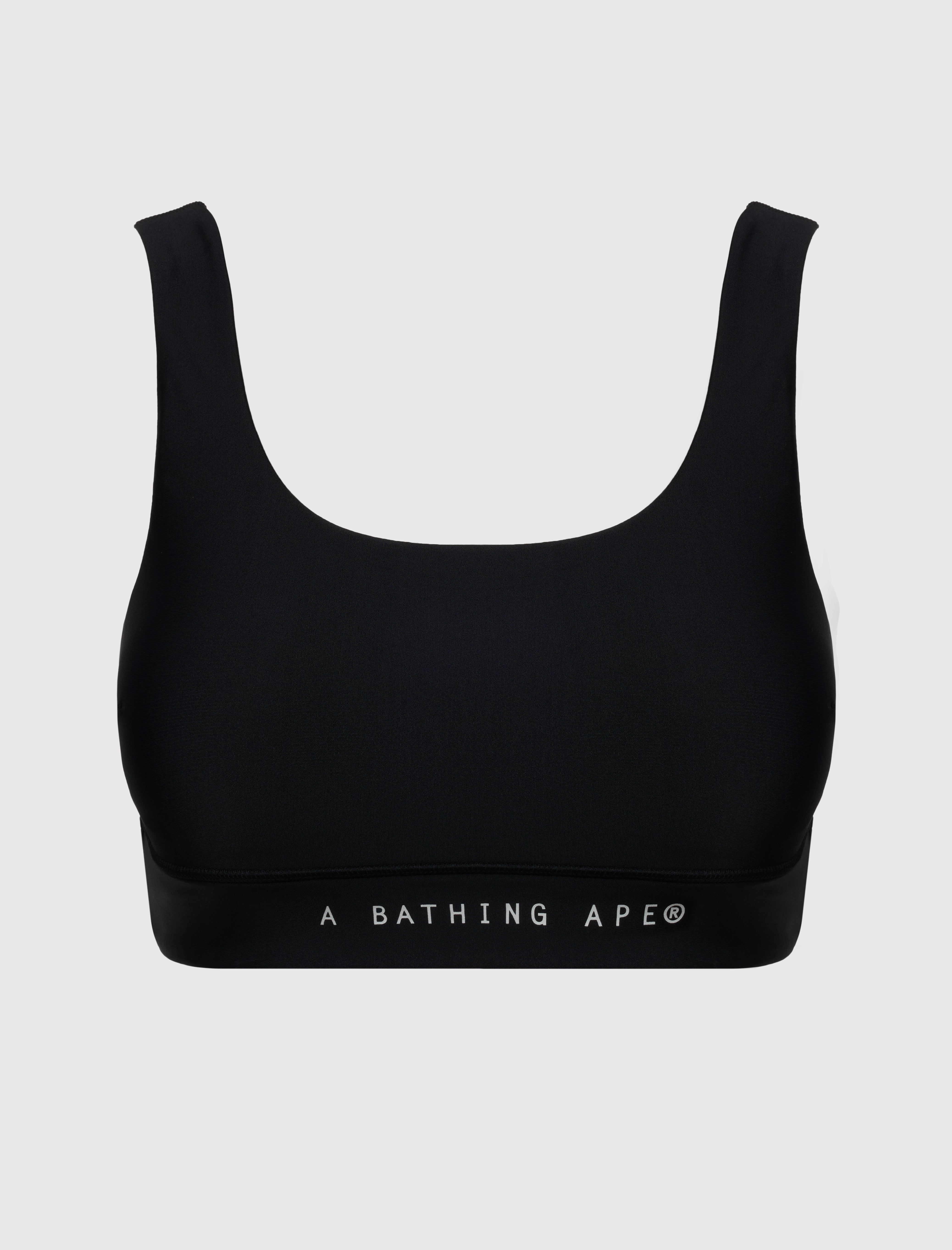 Tight-fit sport bra. Square neckline. Graphic logo text at front. Graphic logo print at back. Elasticized hem.