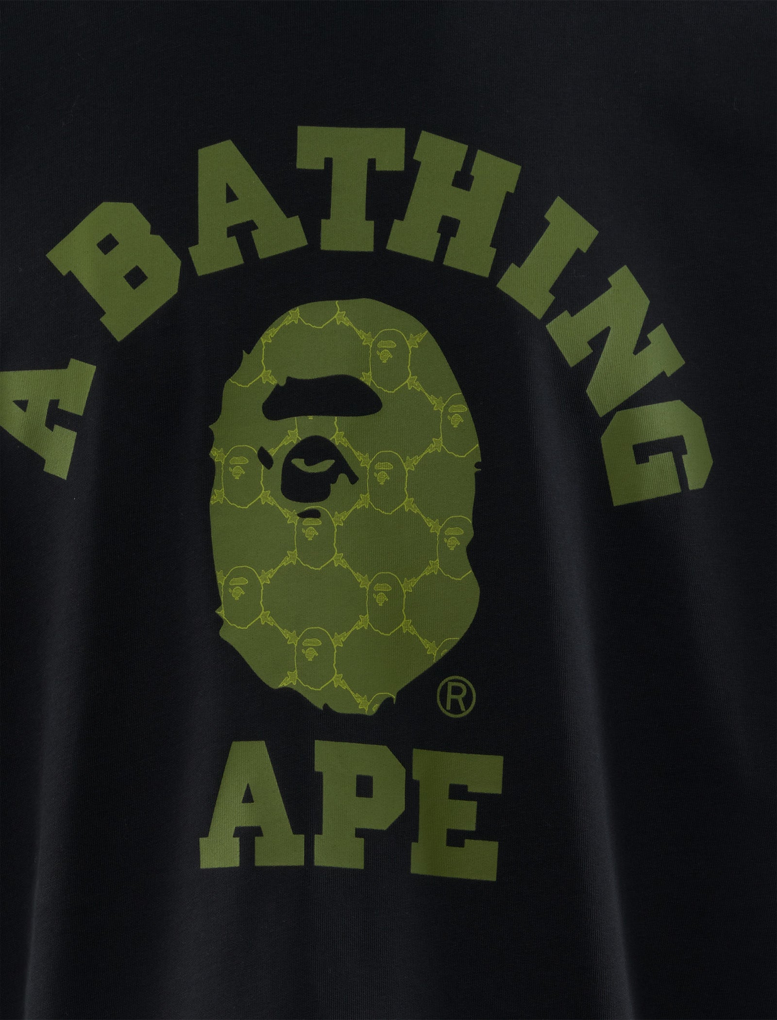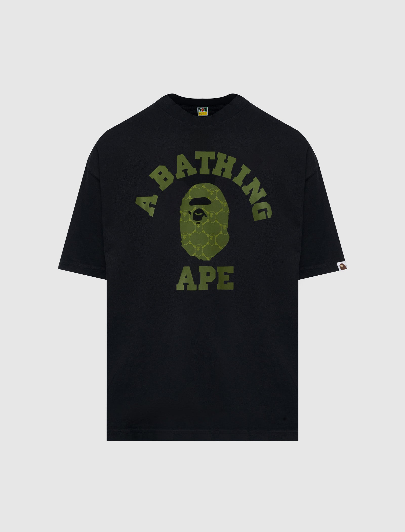 Relaxed-fit short sleeve cotton t-shirt. Rib-knit crewneck and trims. Graphic logo text featuring monogram ape head at front. Woven logo tag at sleeve.