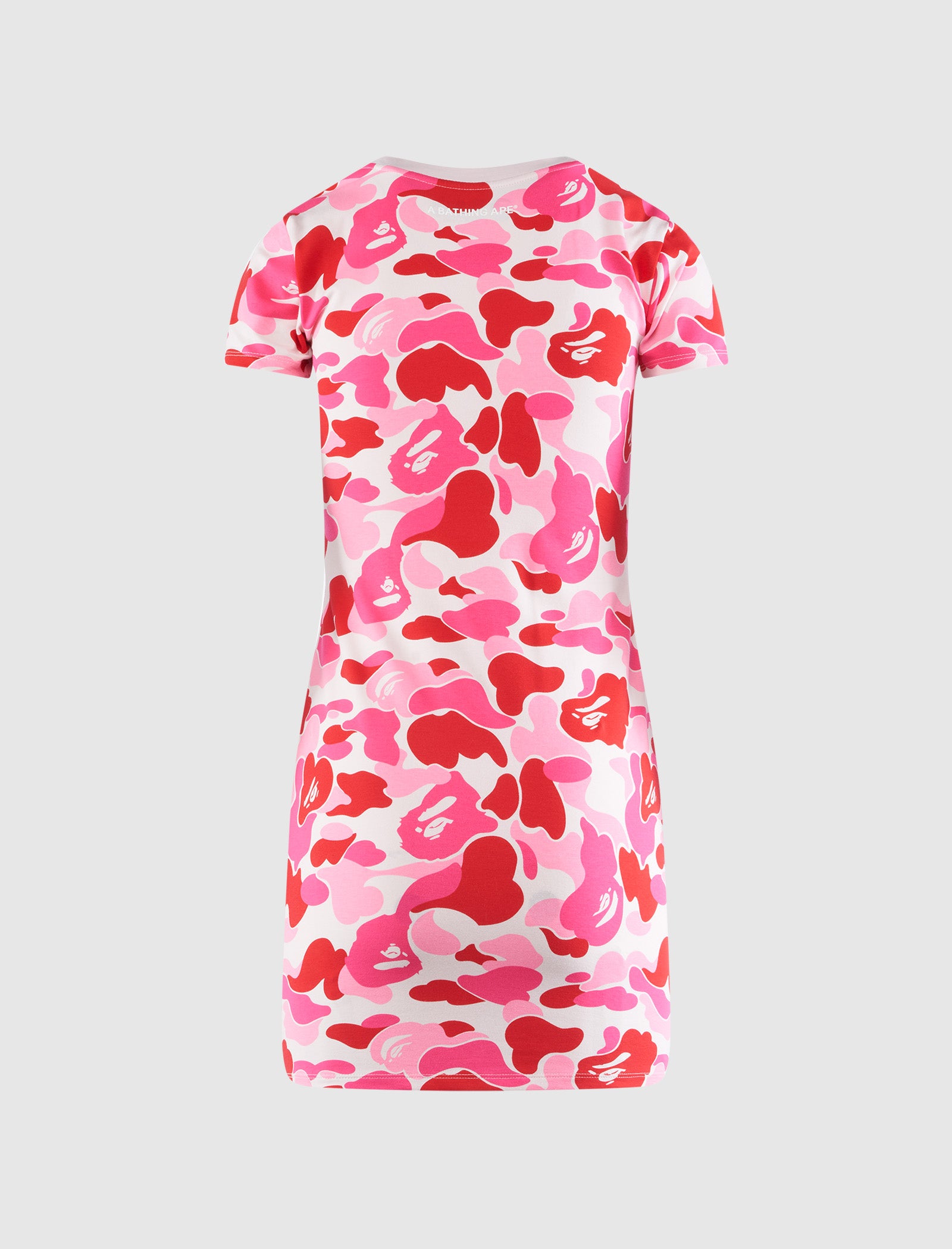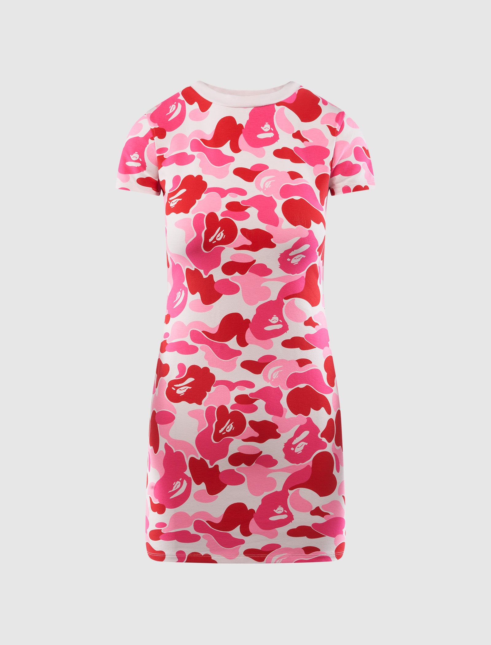 Slim-fit short sleeve stretch cotton-blend jersey dress. Crewneck. Camouflage print throughout. Logo text at back. Woven brand label at cuff.