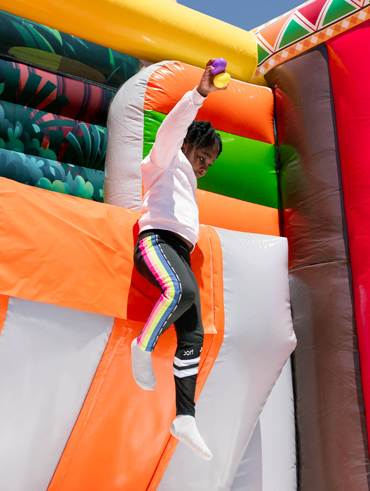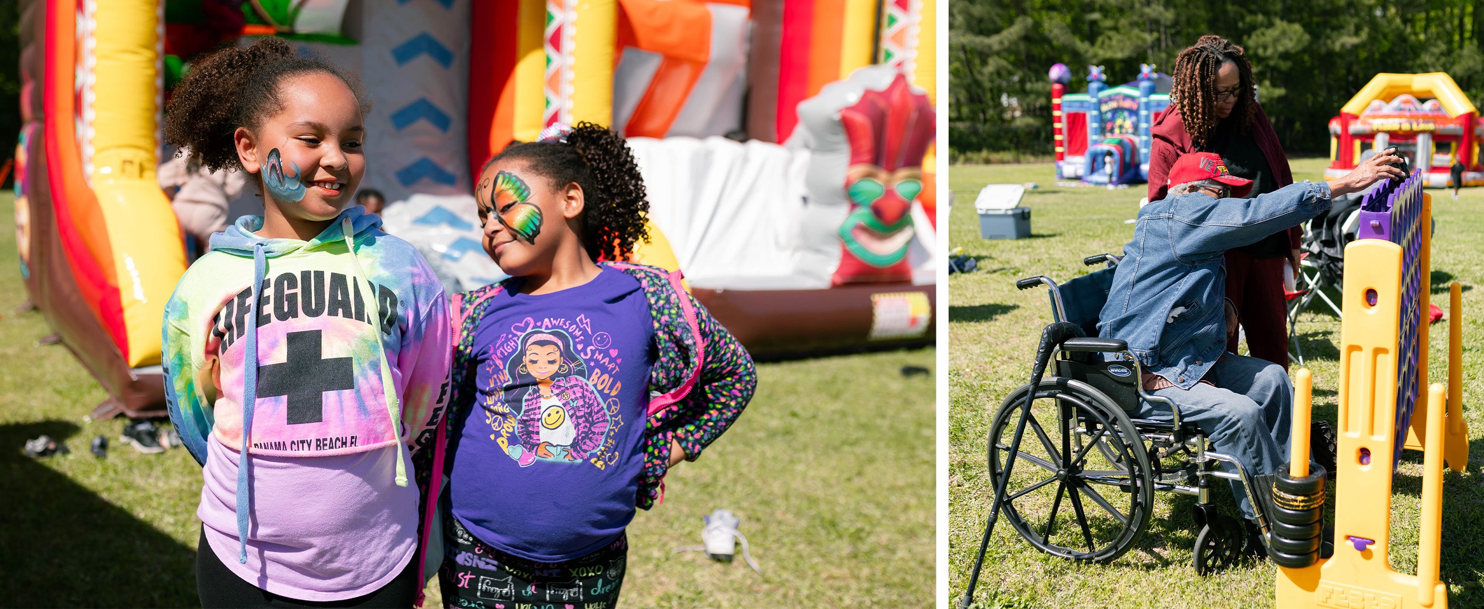 Families came together for a day of interactive experiences: face painting, bounce houses, a gaming truck, live music, and local food vendors turned the school grounds into a full-on community celebration. At the center of it all stood a custom tie-dye mural court by Atlanta artist Fabian Williams, a vibrant symbol of pride and imagination, designed to serve students as a space for movement, growth, and connection.