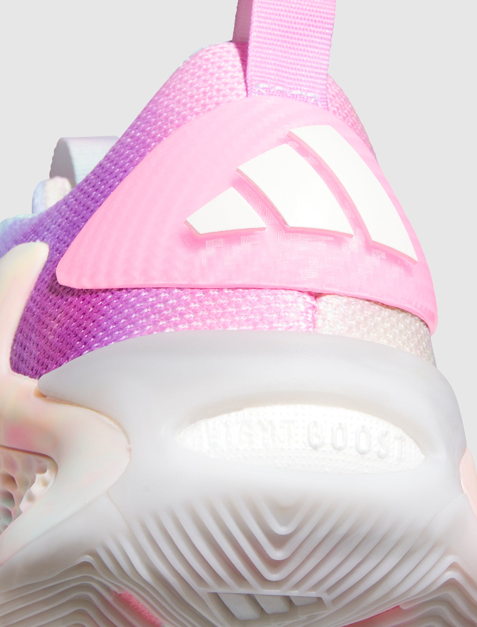 Low top sneakers. Synthetic mesh upper. Honeycomb textured synthetic side panel overlays. Carbon fiber protective heel overlay. Composite foam midsole with lightstrike technology and boost cushioning. Rubber outsole.