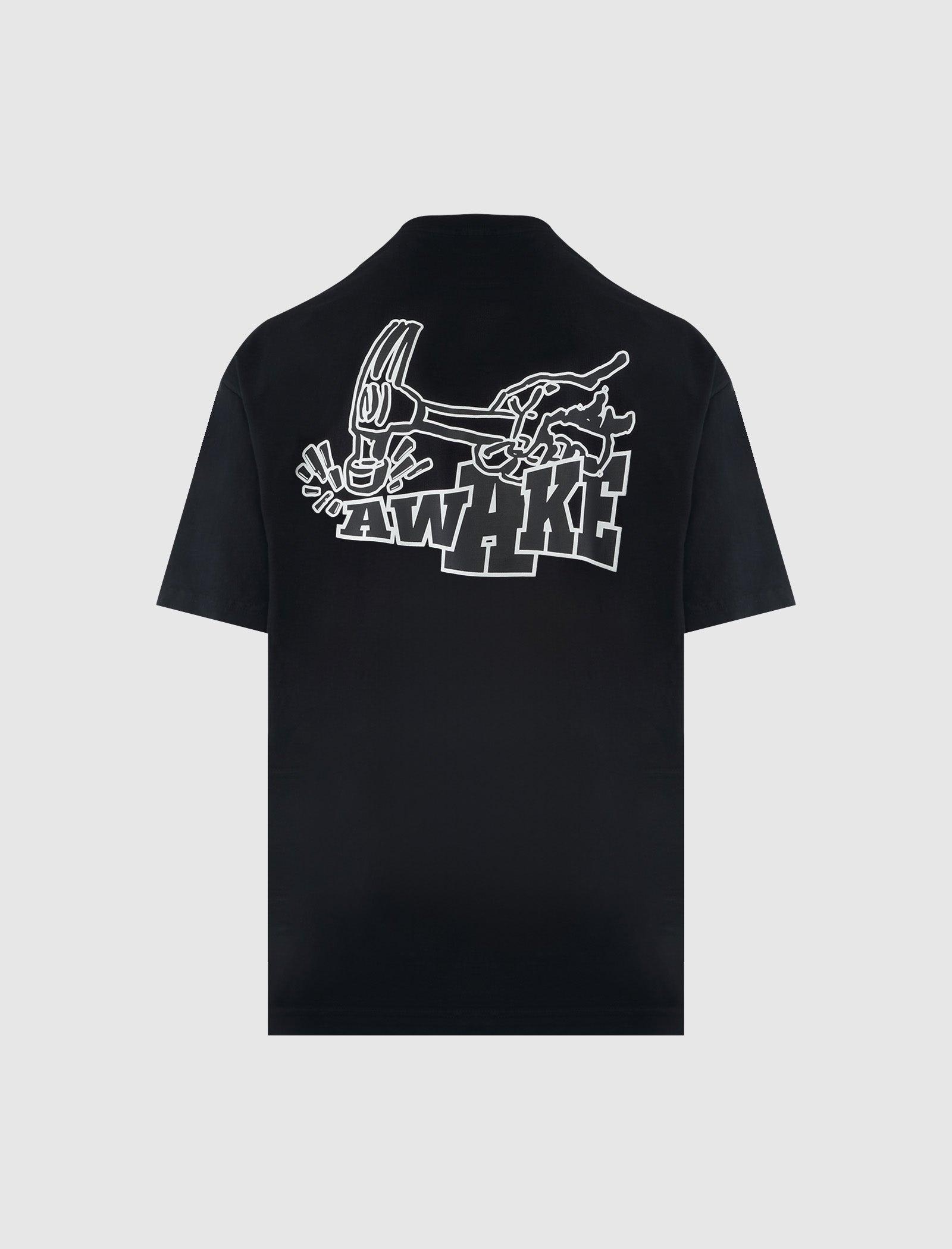 Classic-fit short sleeve cotton t-shirt. Ribbed crewneck and trims. Graphic logo texts and hammer print at chest.