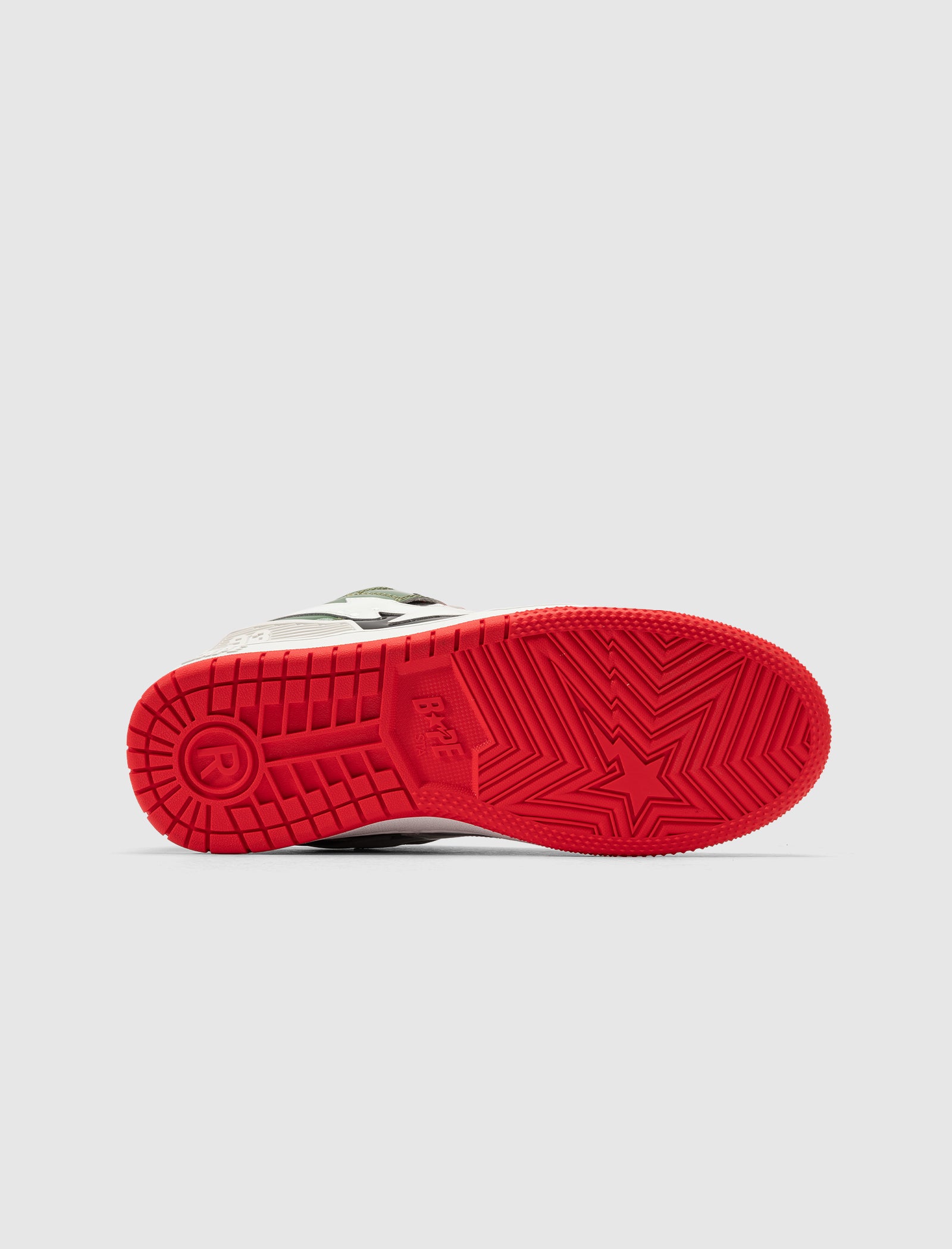 Low top sneakers. Leather overlays around the toe, eyelet panels, and heel counter. Leather logos stitched on the side panels. Perforated leather toe box, side panels, and collar. Front lacing. Rubber midsole Rubber outsole.
