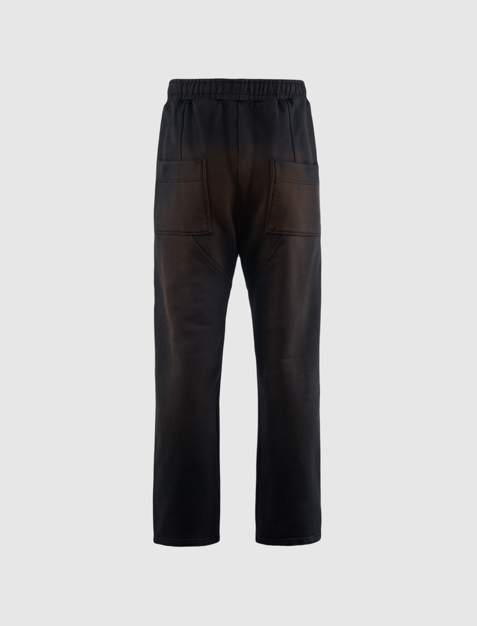 Relaxed-fit heavyweight straight leg sweatpants. Elasticized drawstring waistband. Four-pockets. Graphic logo print at front. Graphic shell print at front.