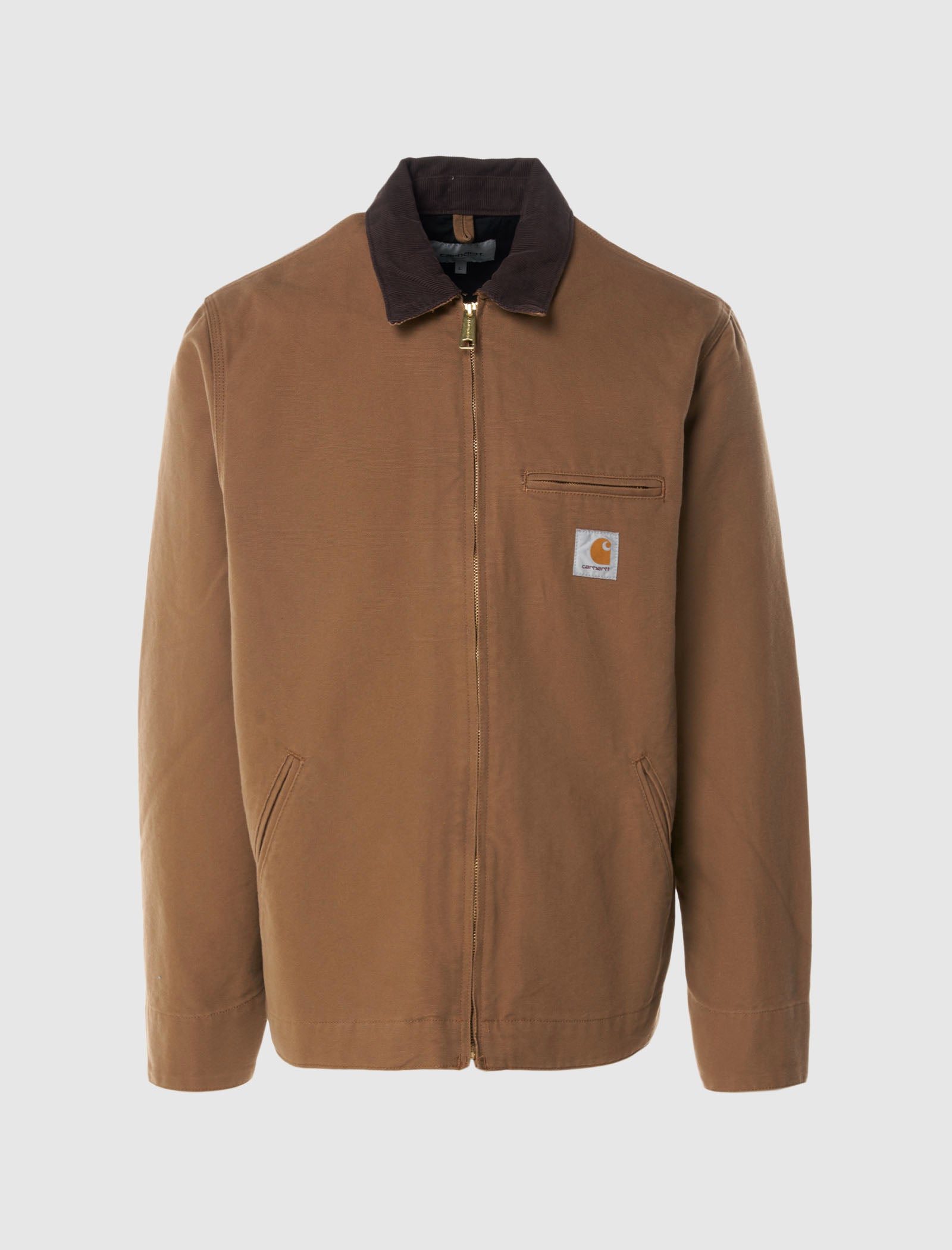 Regular-fit work jacket. Contrast pointed corduroy collar. Single slit pocket at chest and logo patch. Two slit pockets at sides. Gold-tone hardware. Snap sleeve cuffs. Zip closure at center front.