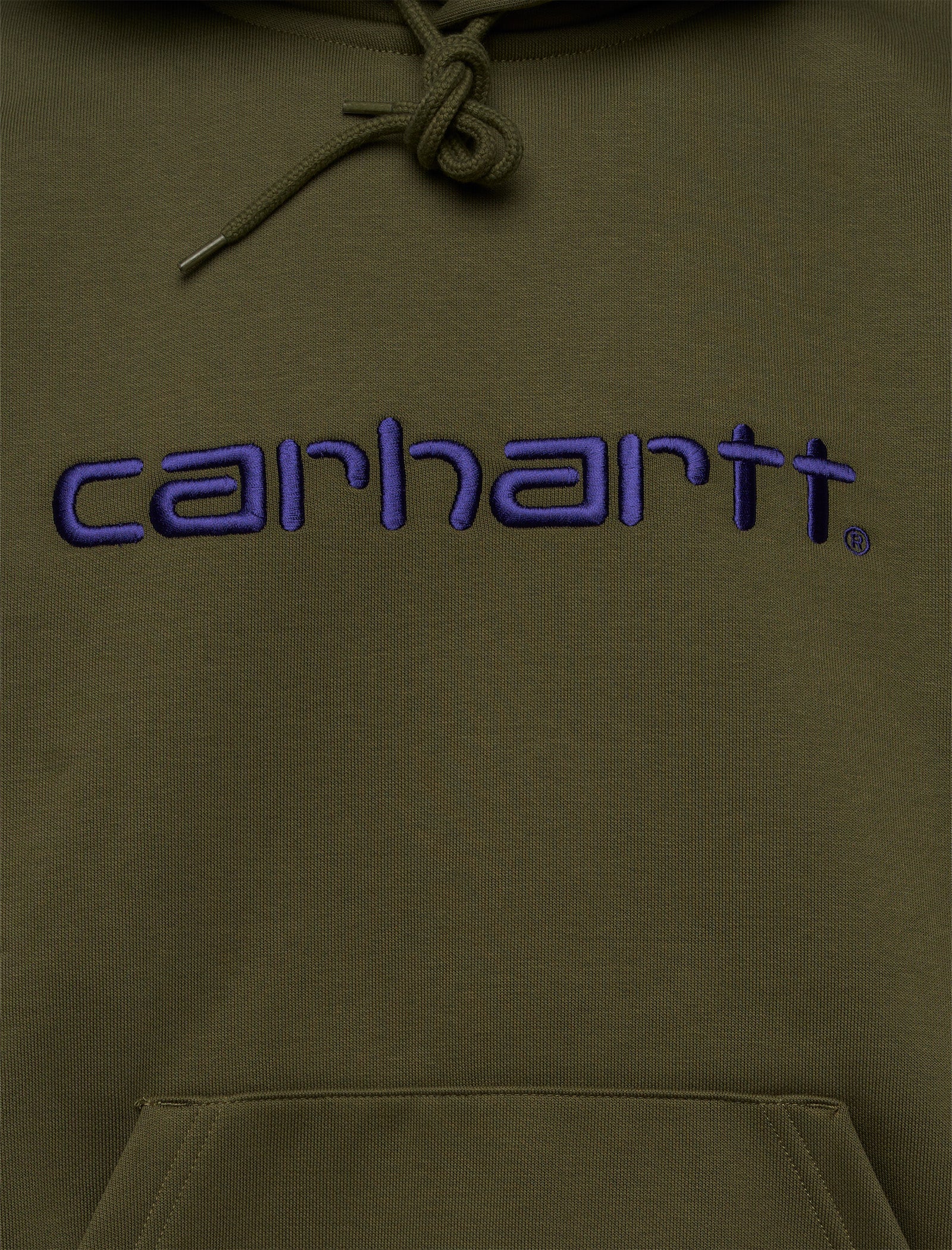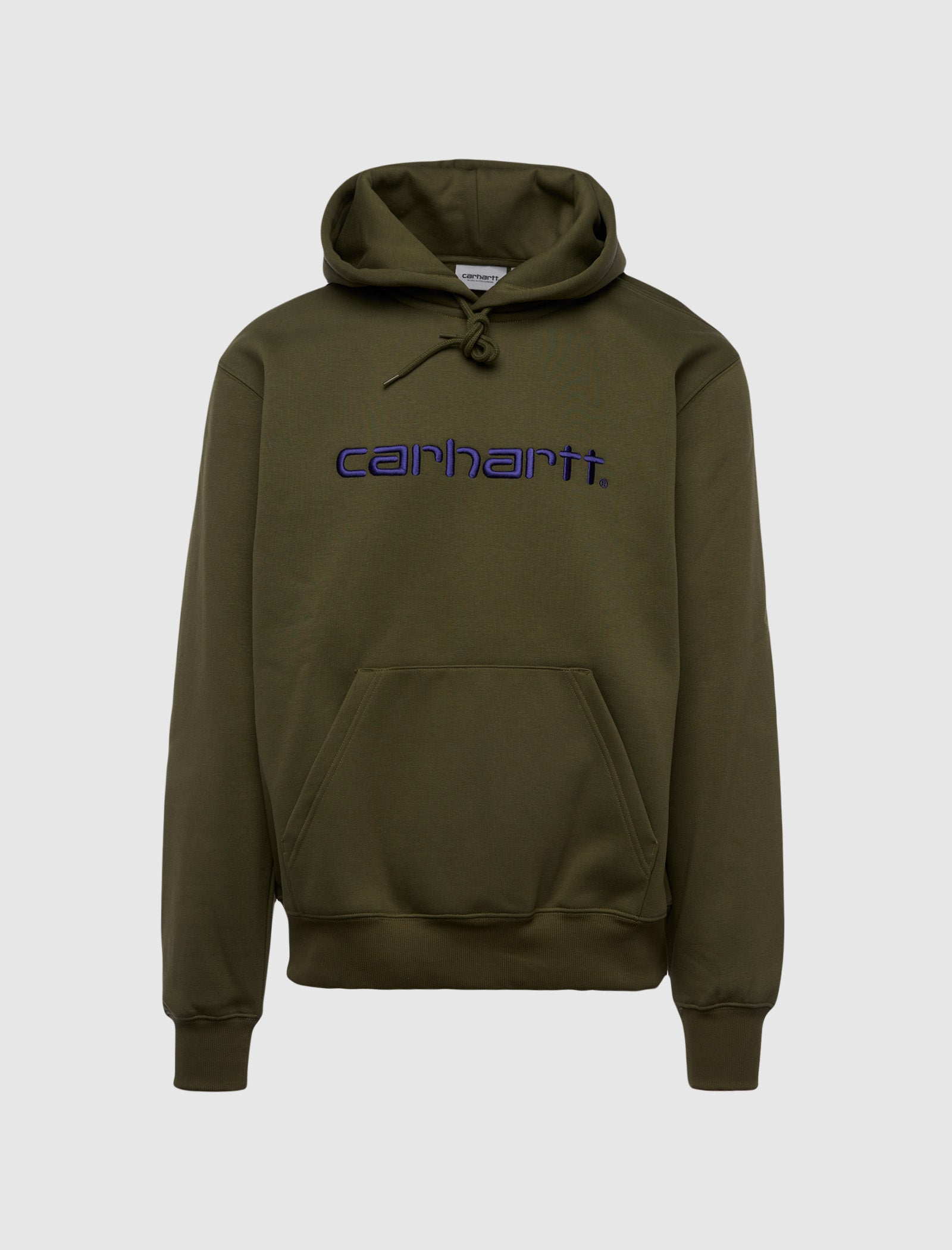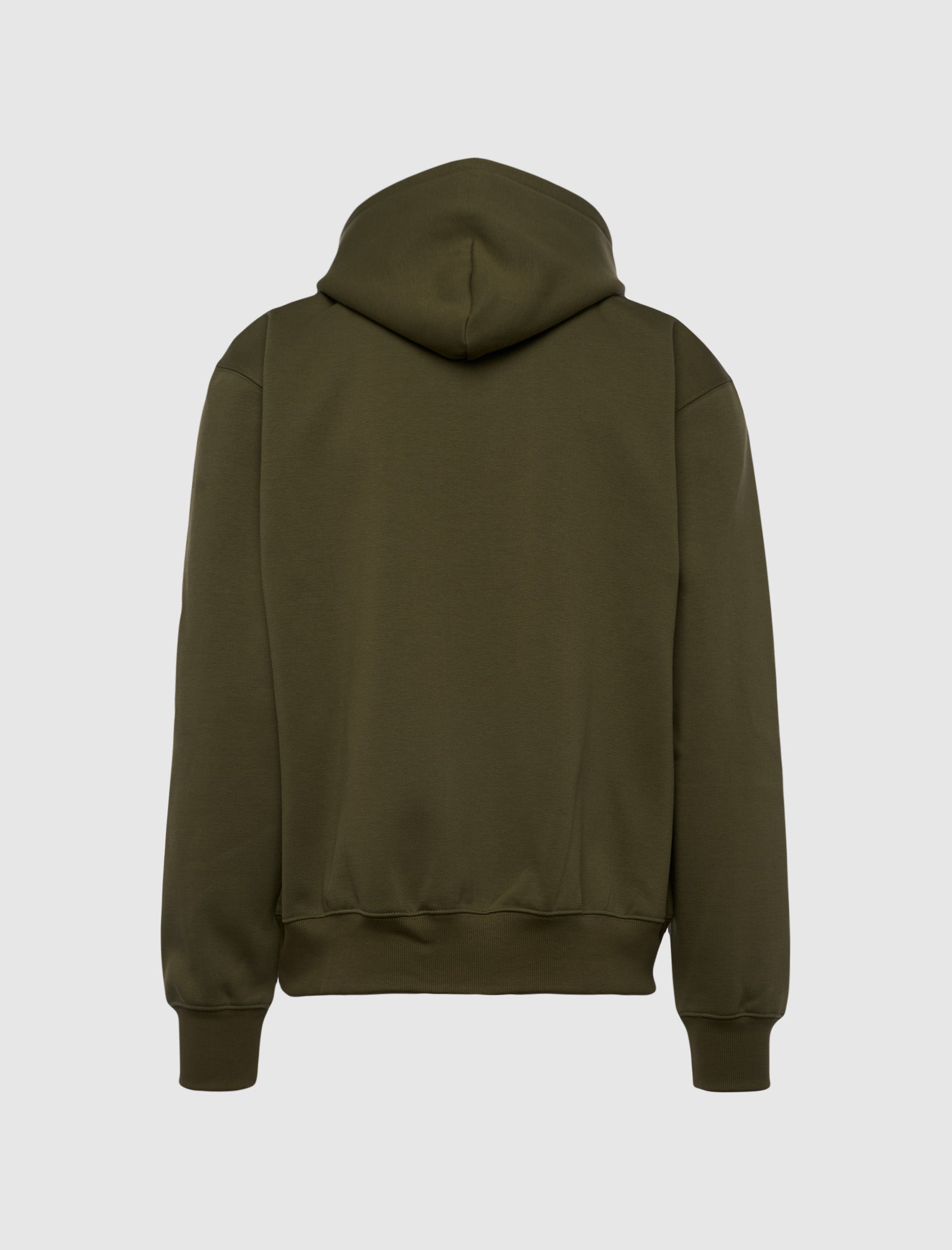 Regular-fit pullover hoodie. Fixed hood with adjustable drawstrings. Embroidered logo text at front. Ribbed cuffs and sleeves. Kangaroo pocket at front.