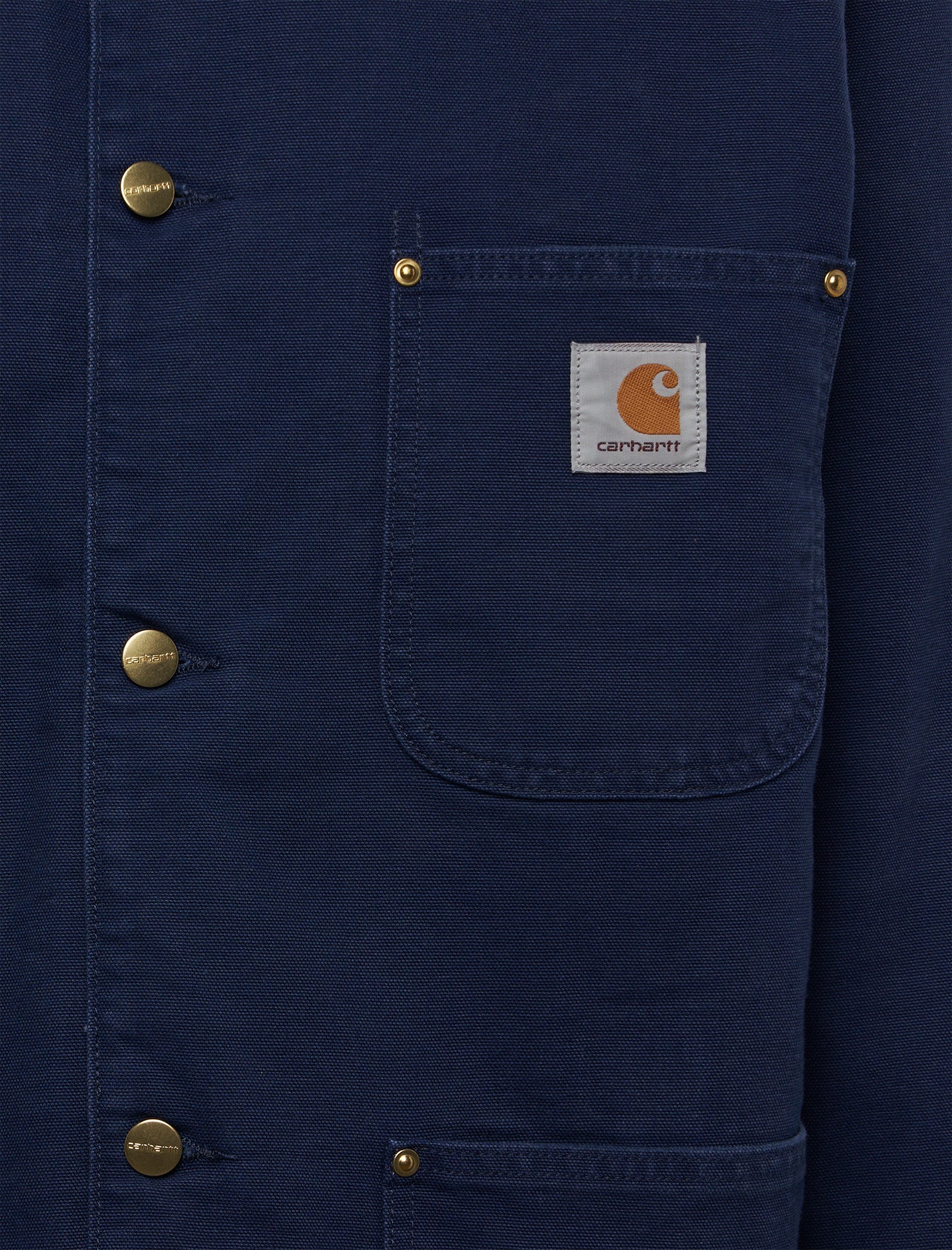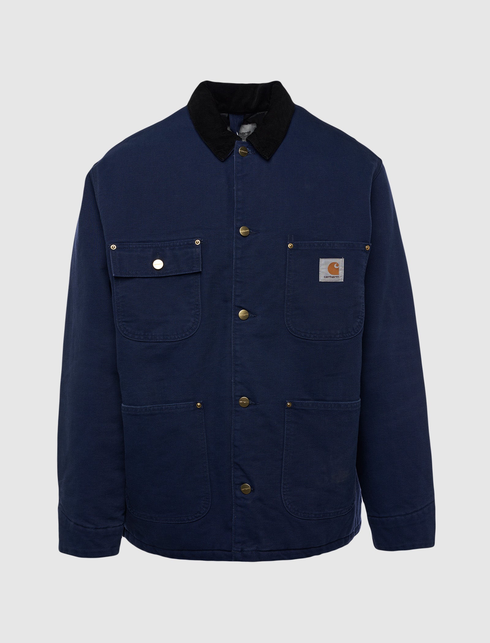 Relaxed-fit woven chore coat. Corduroy collar. Four patch pockets. Woven brand label at chest. Gold-tone hardware. Button sleeve cuffs. Button closures at front.