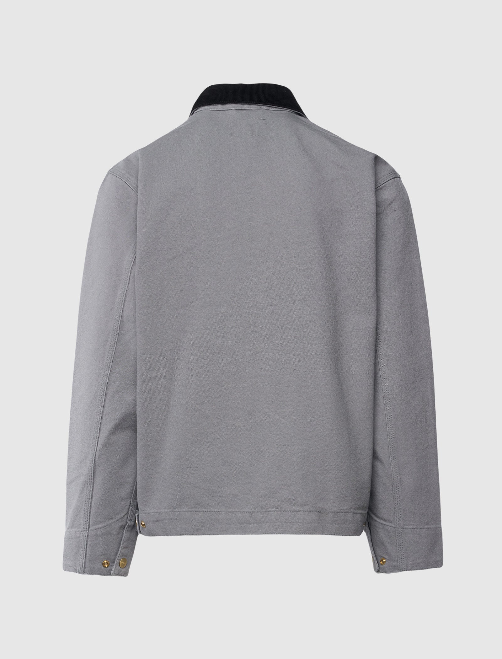 Regular-fit cropped dearborn canvas jacket. Contrast collar. Single zip pocket and logo at chest. Two welt pockets at sides. Adjustable button sleeve cuffs. Zip closure at front.