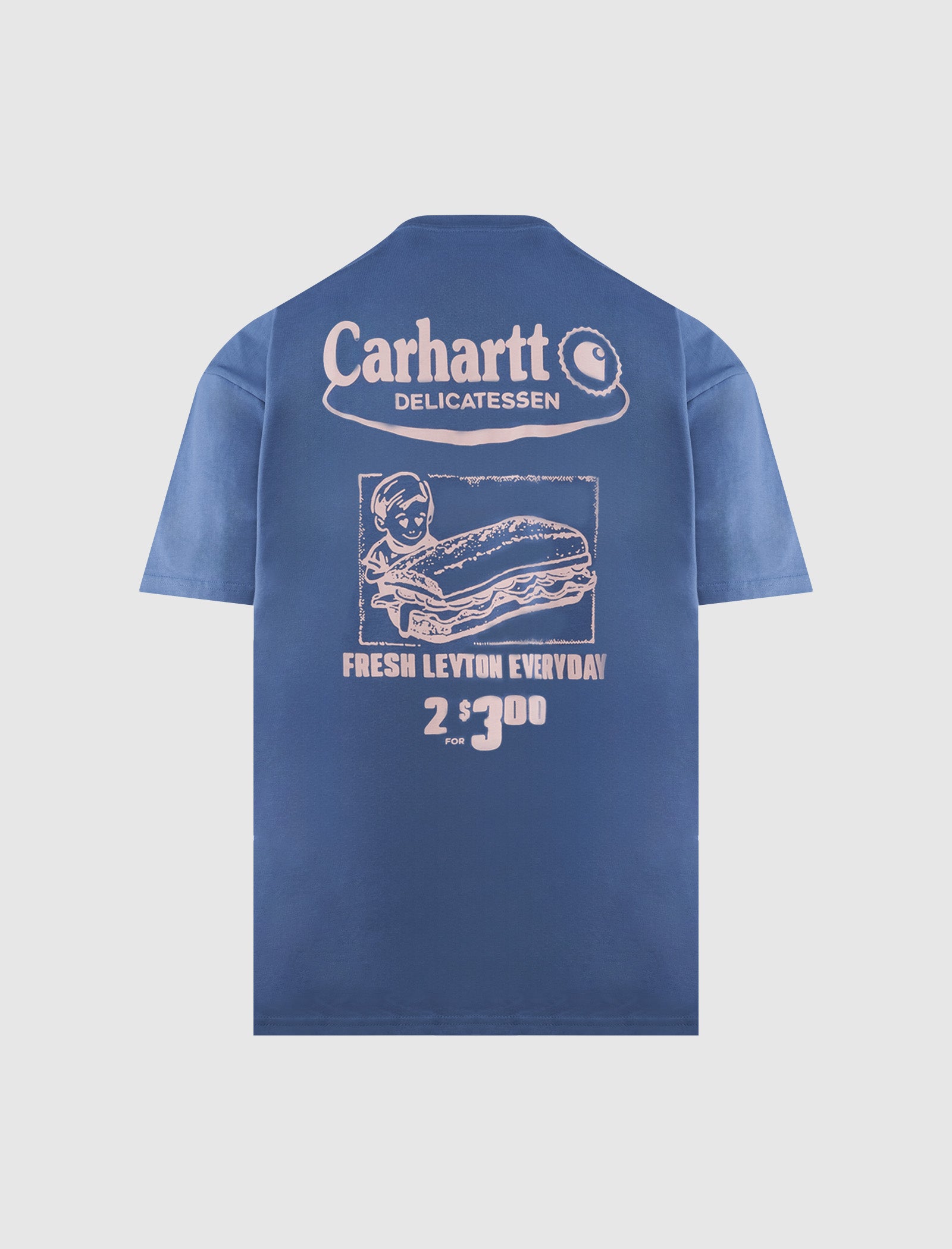 Relaxed-fit short sleeve cotton t-shirt. Crewneck. Graphic logo texts at chest. Graphic logo texts with text at back featuring sandwich print.