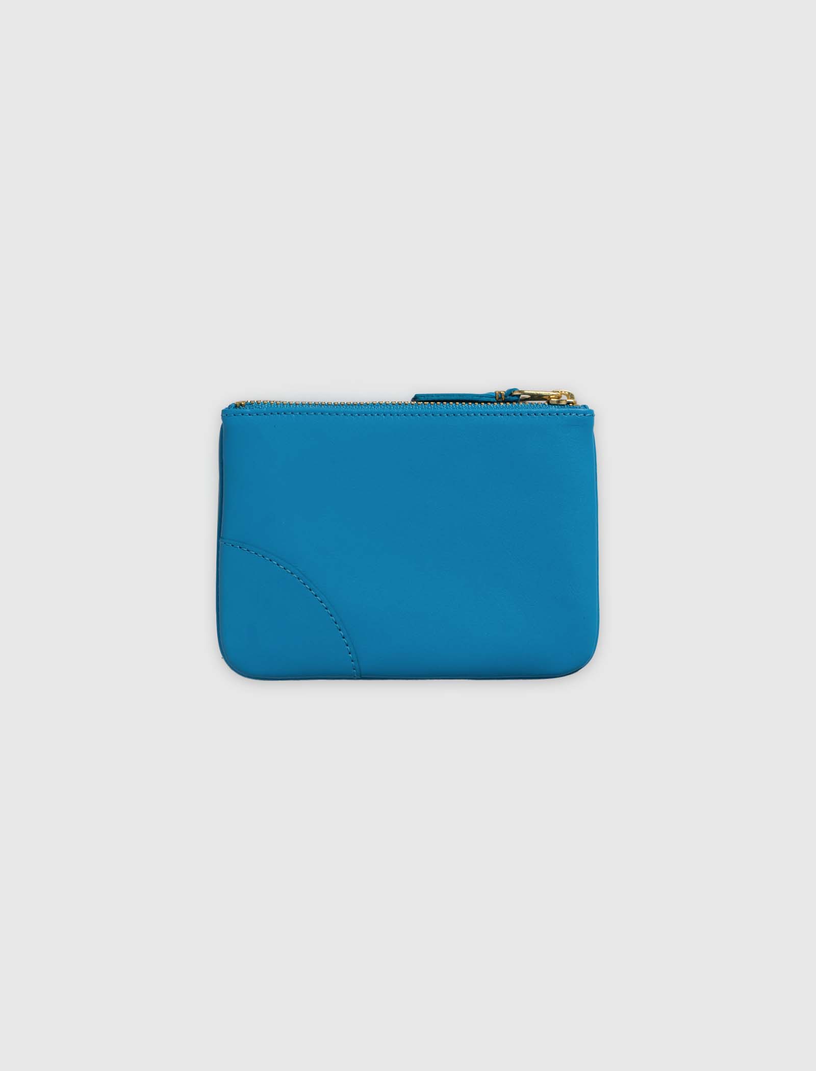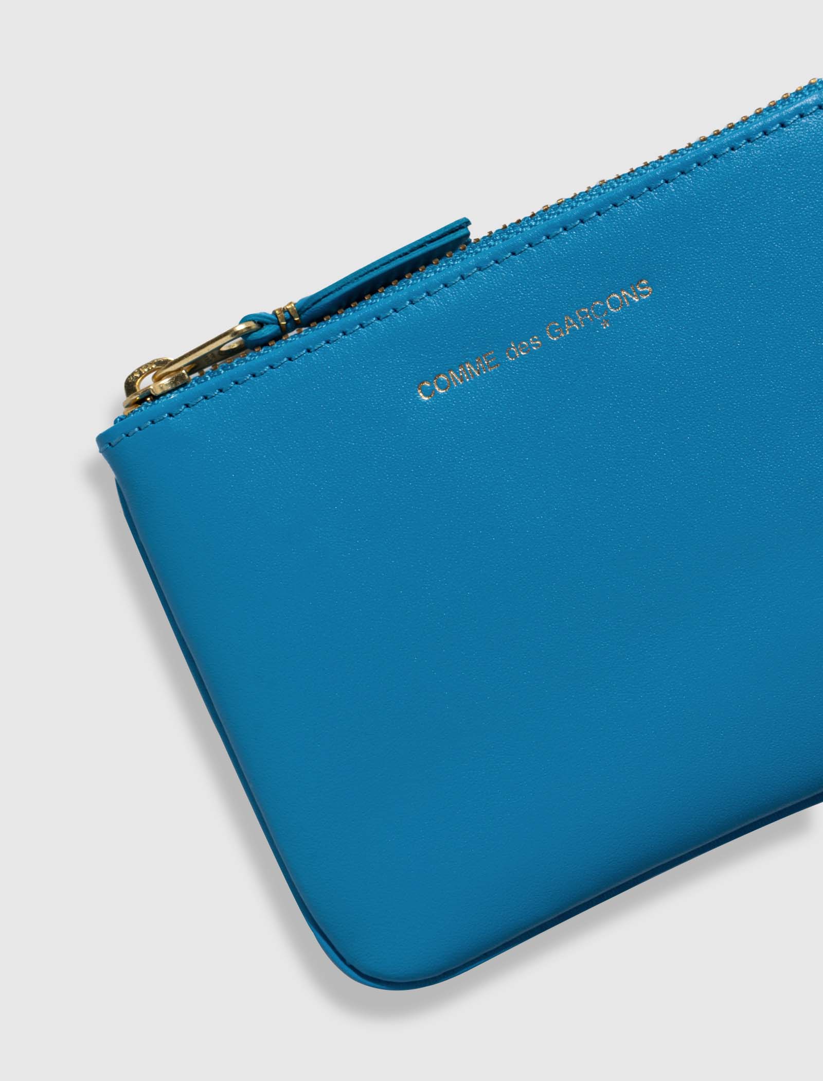 Zippered leather wallet. Top zip closure. Stamped logo at the front.