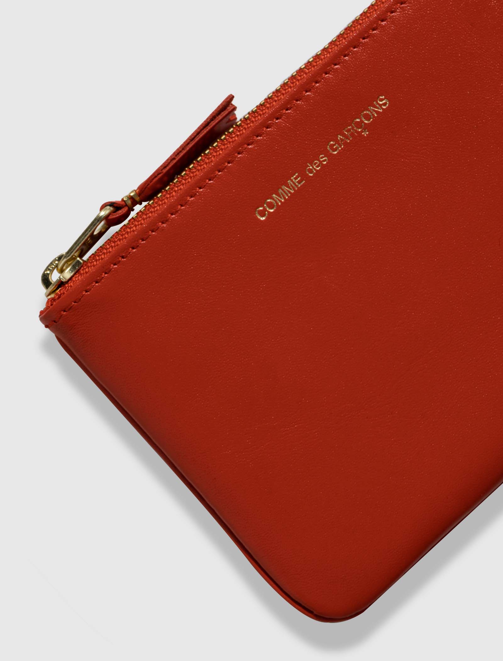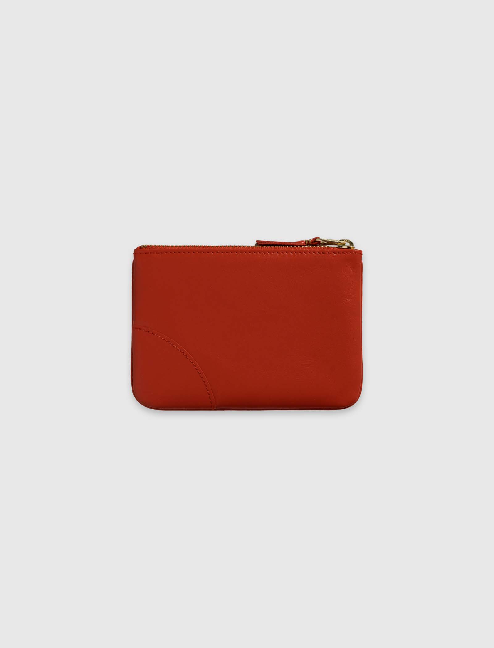 Zippered leather wallet. Top zip closure. Stamped logo at the front.