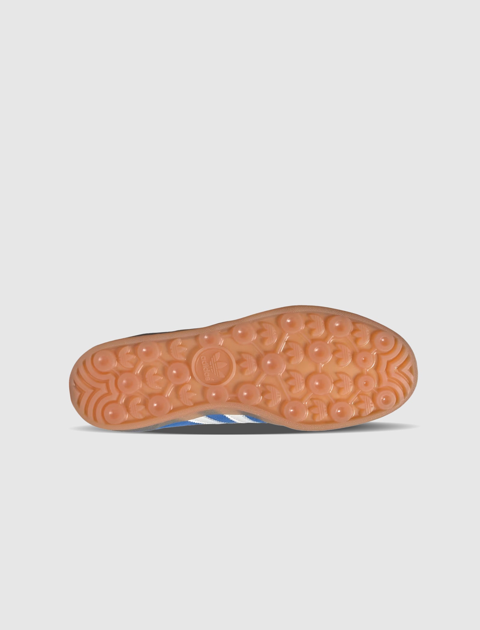 Low top sneakers. Nubuck upper. Leather stripe motif patches stitched on the side panels. Leather overlay on the back of the collar with a stamped logo motif at the center. Front lacing. Textured leather tongue with a printed logo motif at the center. Rubber midsole. Rubber outsole.