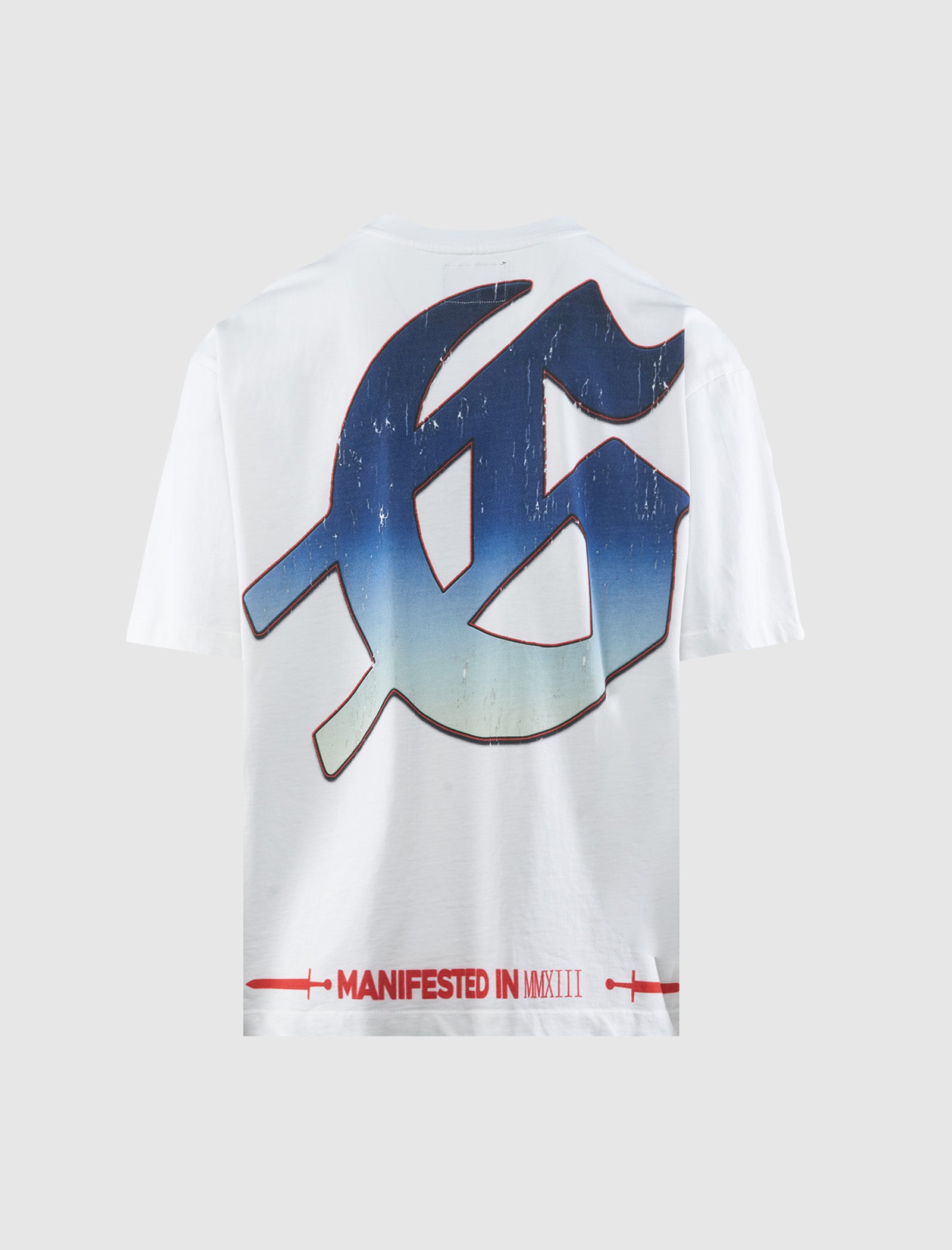 Relaxed-fit short sleeve cotton t-shirt. Crewneck. Graphic logo text, large print and texts at front. Large logo initial and logo text at back.