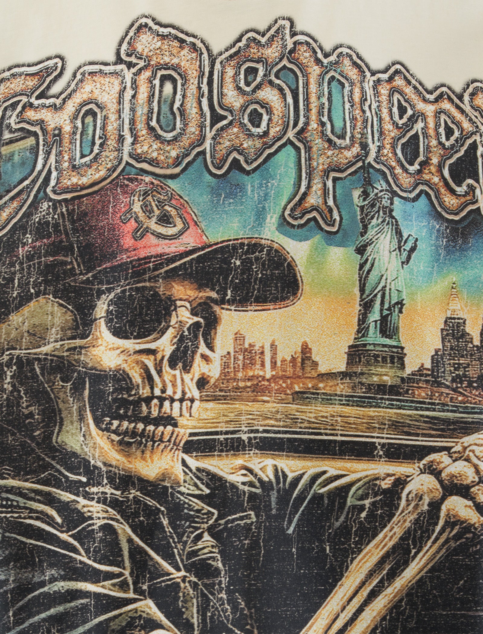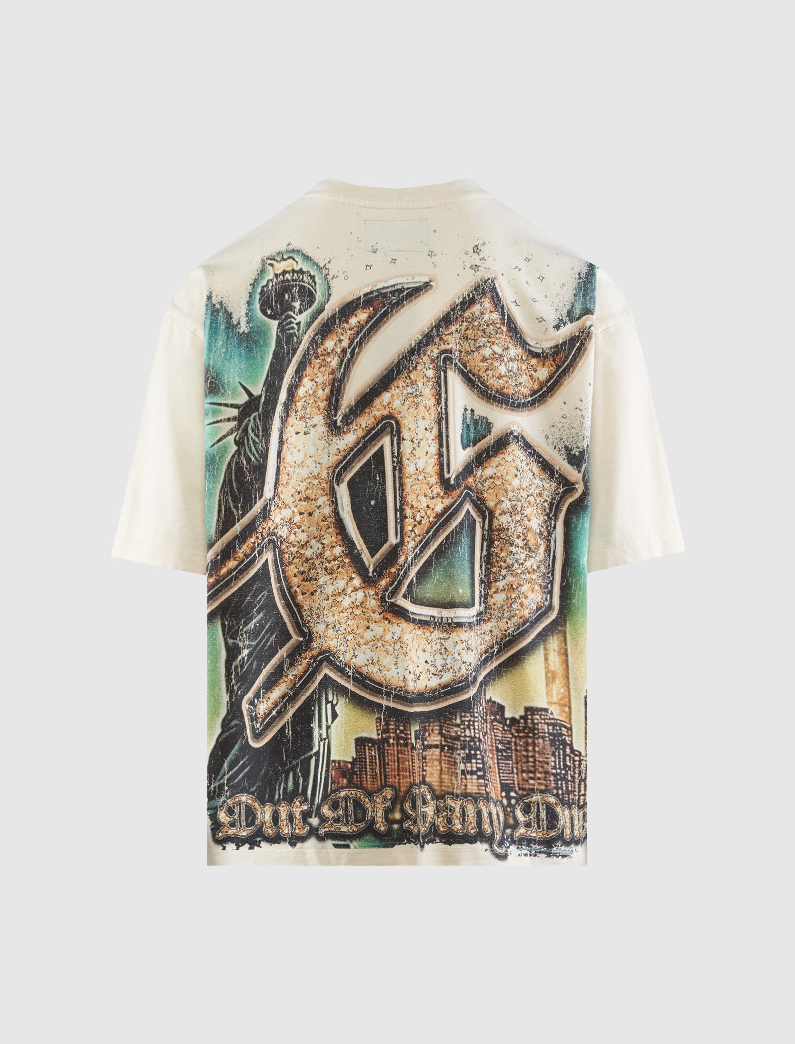 Relaxed-fit short sleeve cotton t-shirt. Crewneck. Graphic logo text and large graphic print at front. Graphic logo initial, print and texts at back.