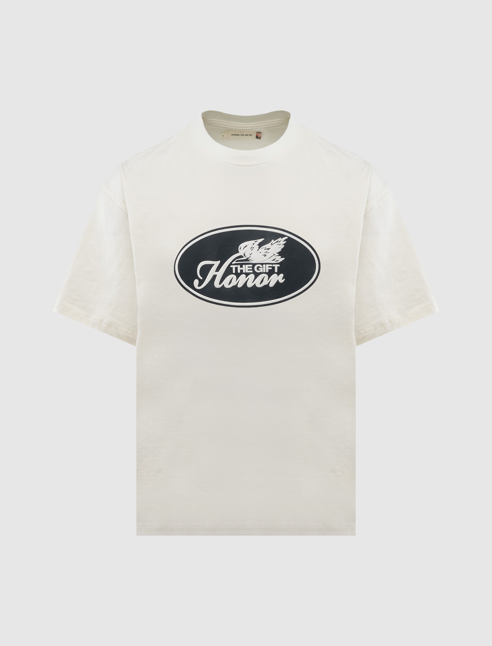 Classic-fit heavyweight short sleeve cotton t-shirt. Ribbed crewneck and trims. Graphic printed logo patch at chest. Graphic printed logo patches at back.