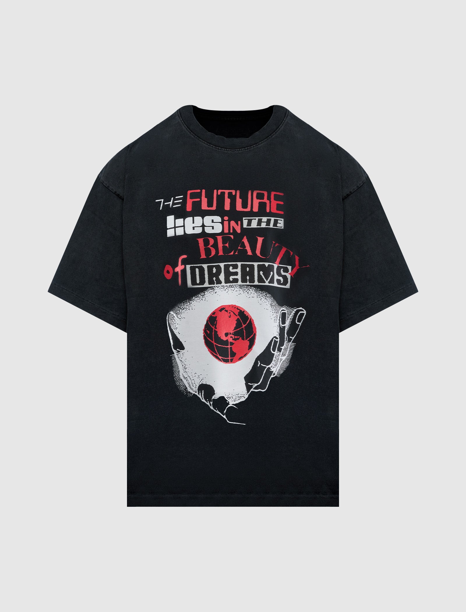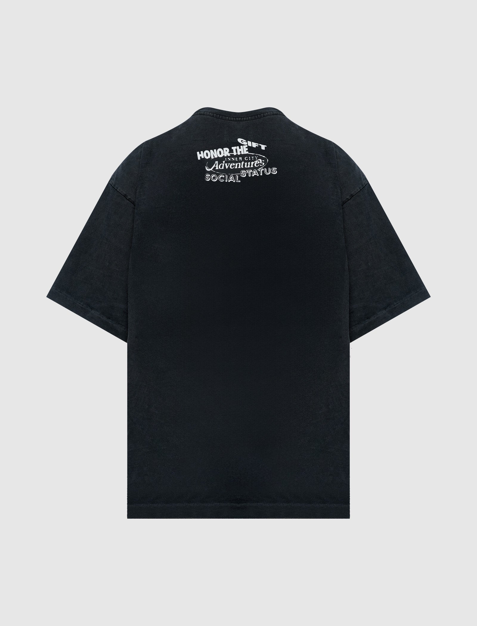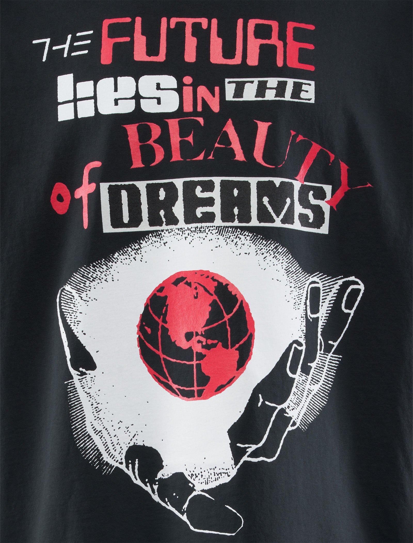 Relaxed-fit short sleeve cotton t-shirt. Ribbed crewneck. Graphic logo text featuring globe print at front. Graphic logo texts at back.
