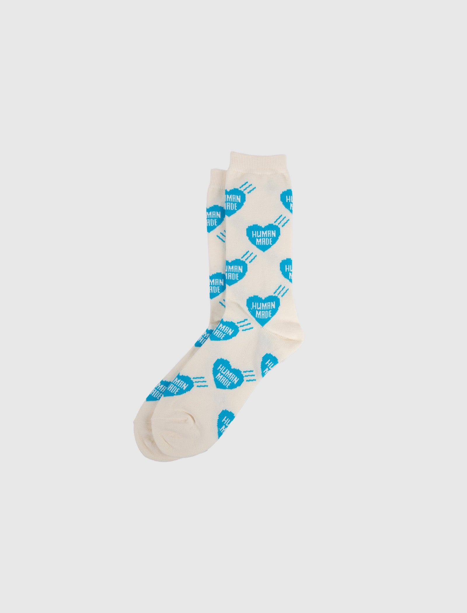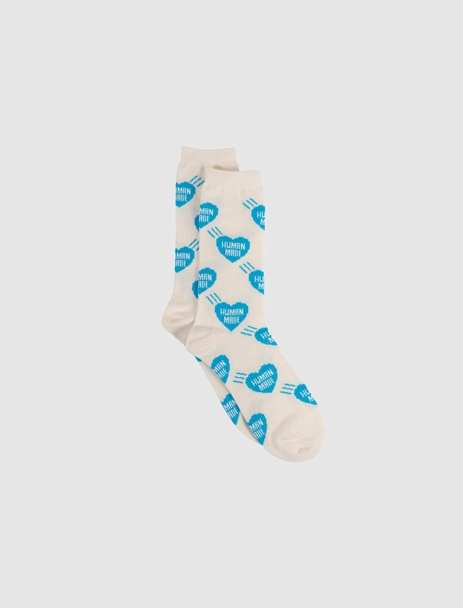 Cotton-blend knit socks. Embroidered logo heart prints featuring logo texts throughout. Round toes.