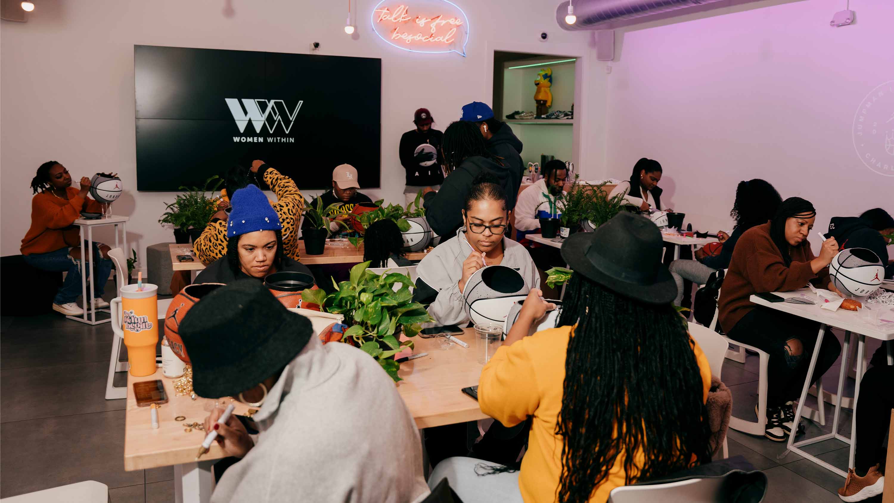 In this special edition of Women Within, locals connected in the Queen City for a night of crafting basketball planters and infusing their unique perspective into each creation. This celebration of the Jumpman Invitational went beyond the tangible results, it became a celebration of shared passion and a platform to forge connections within the community.
