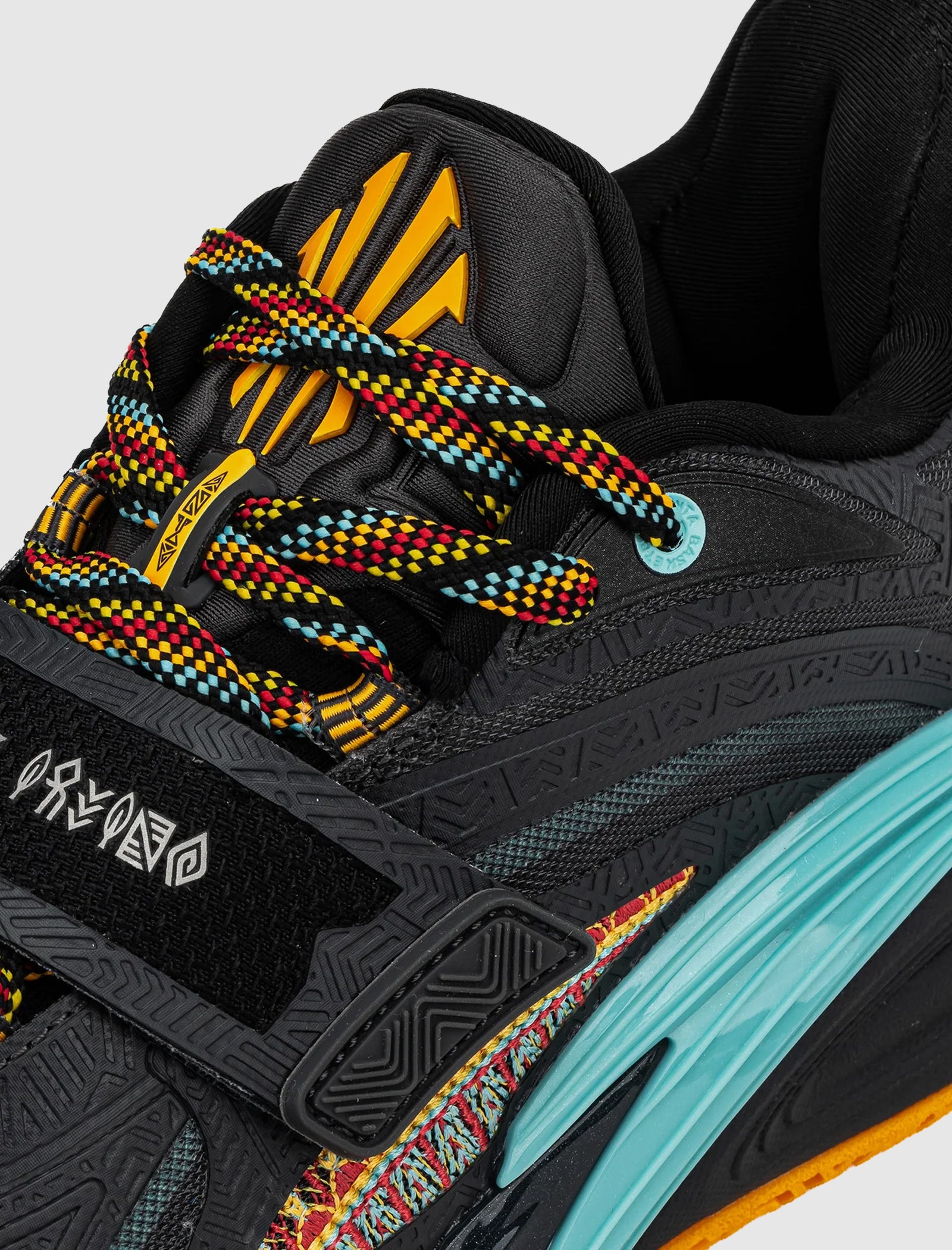 Low top sneakers. Mesh upper with textured synthetic TPU overlays around the toe, side panels, and heel counter. Front lacing with a padded tongue. Synthetic TPU strap across the forefoot. Logo motif insert at the center. Composite foam midsole with a carbon plate at the midfoot. Anti-slip rubber outsole.