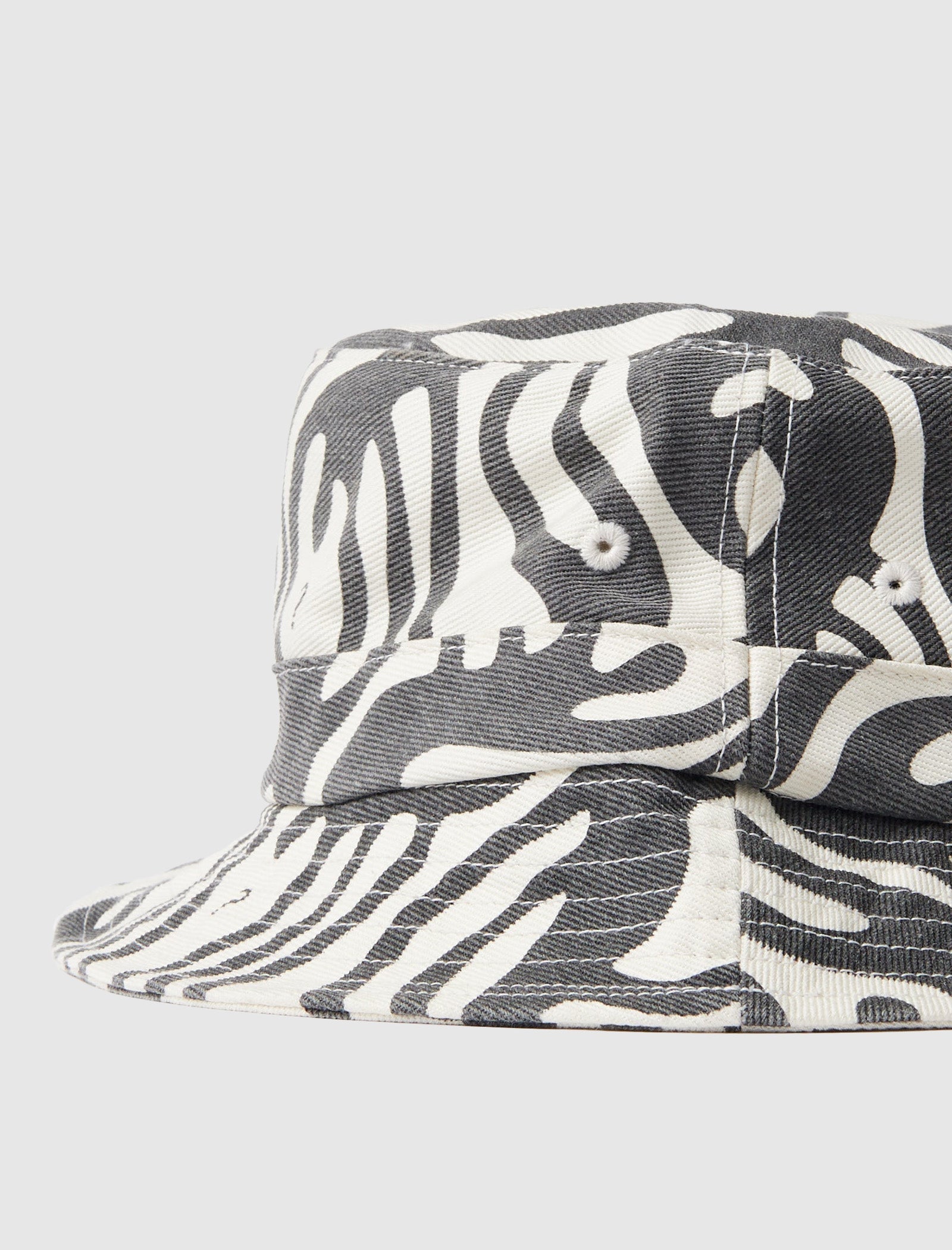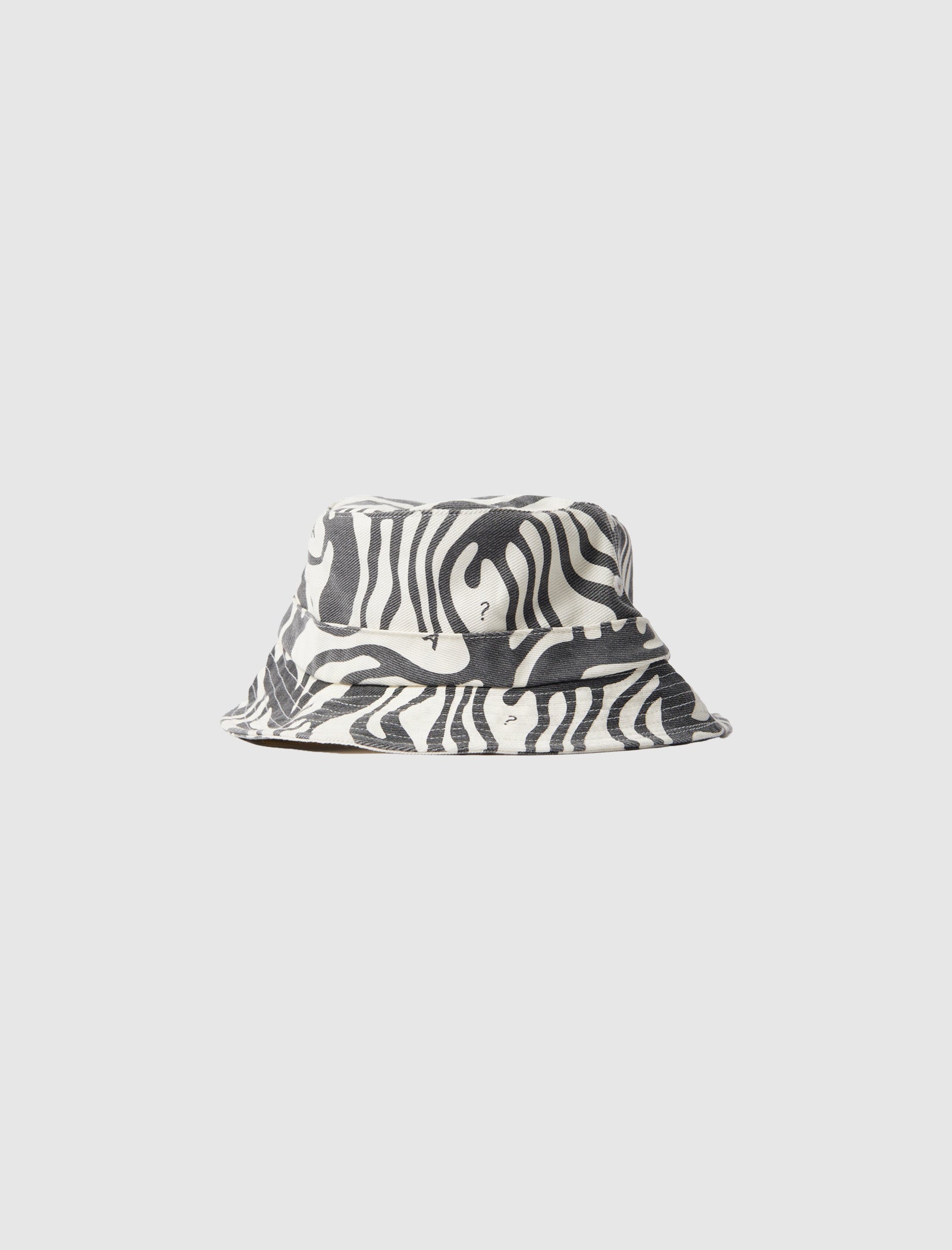 Cotton twill bucket hat. Wide brim. Embroidered eyelets throughout. Swirl pattern with "R" initial throughout.