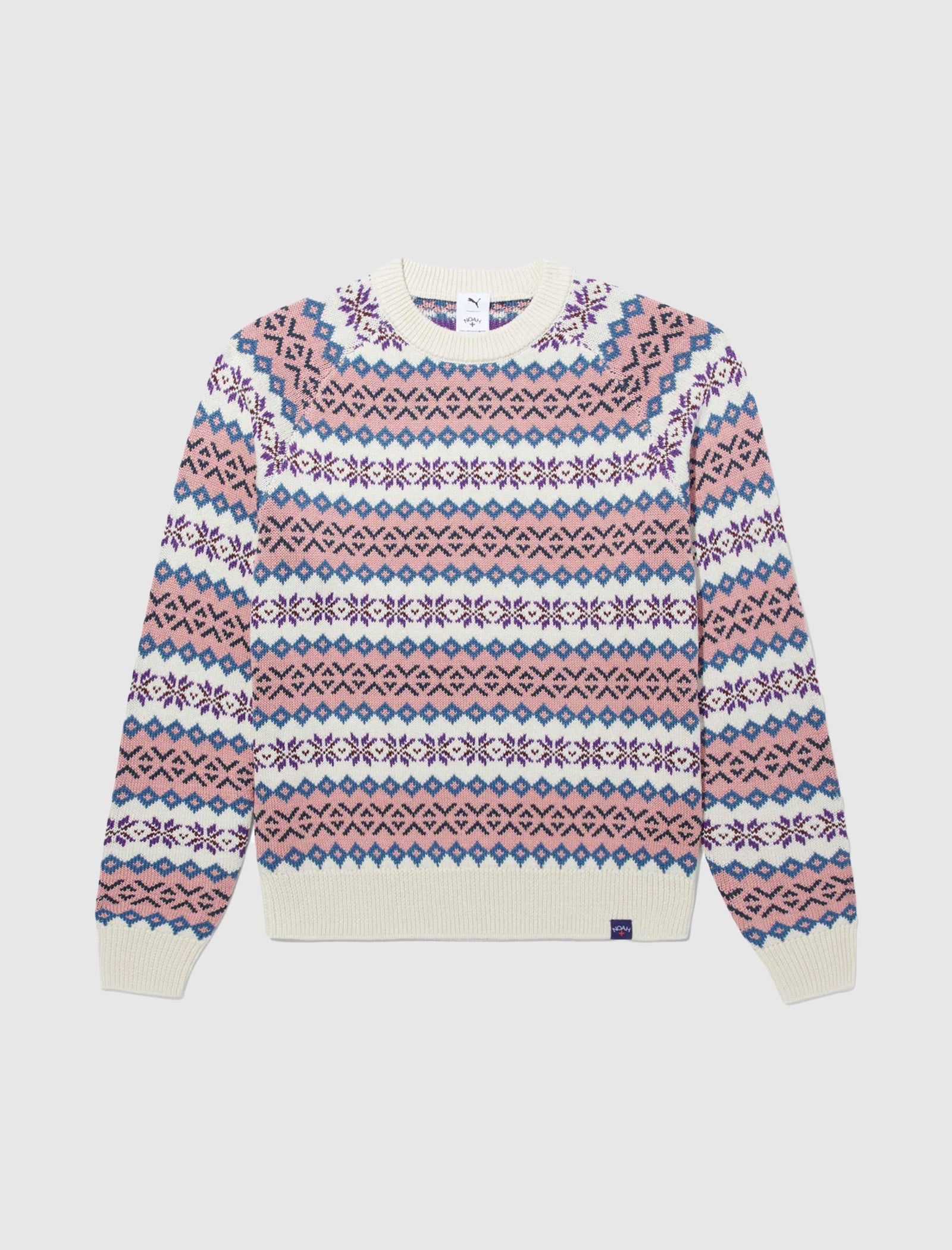 Regular-fit wool blend sweater. Ribbed crewneck and cuffs. Snowflake pattern throughout. Raglan sleeves. Woven logo tag at hem.
