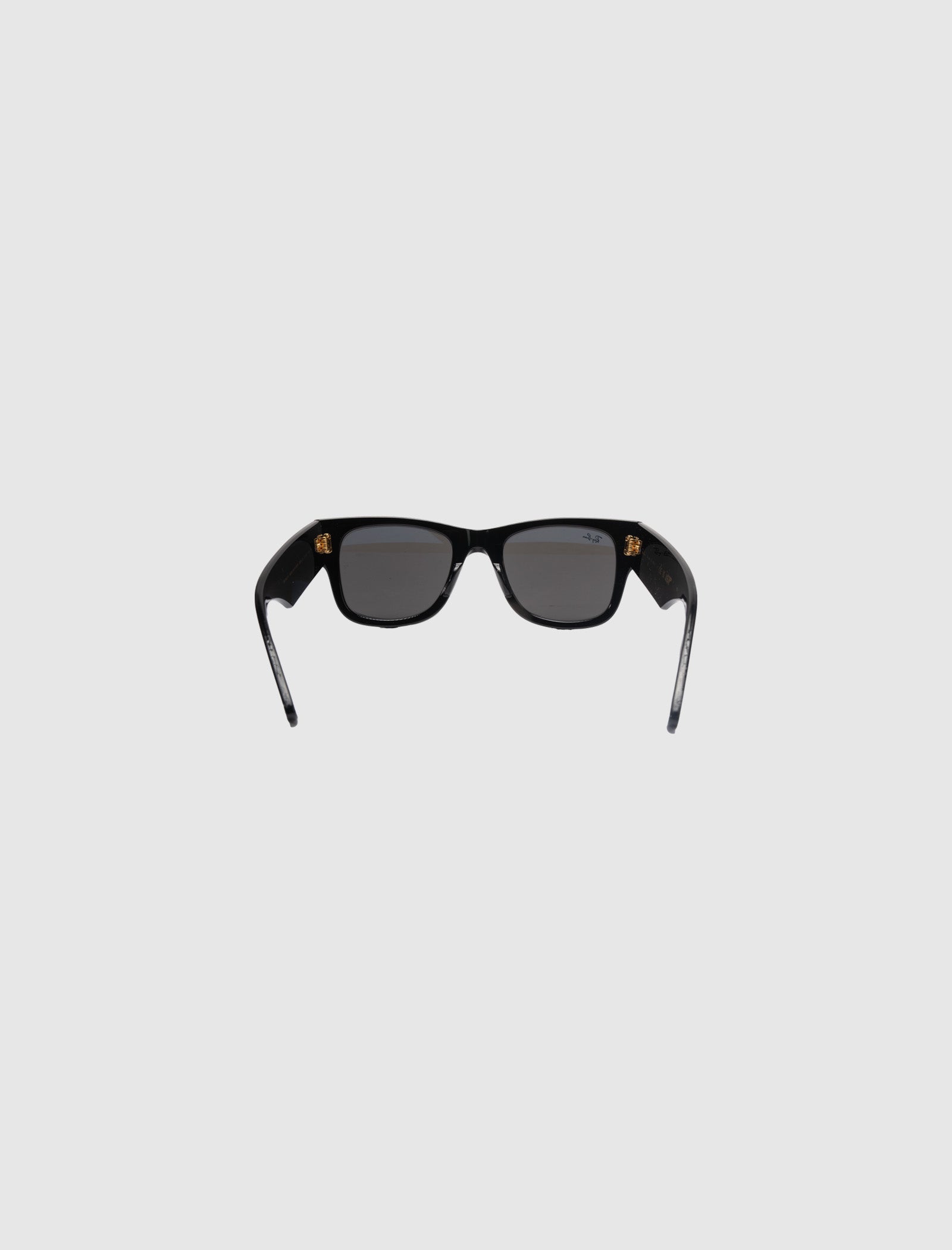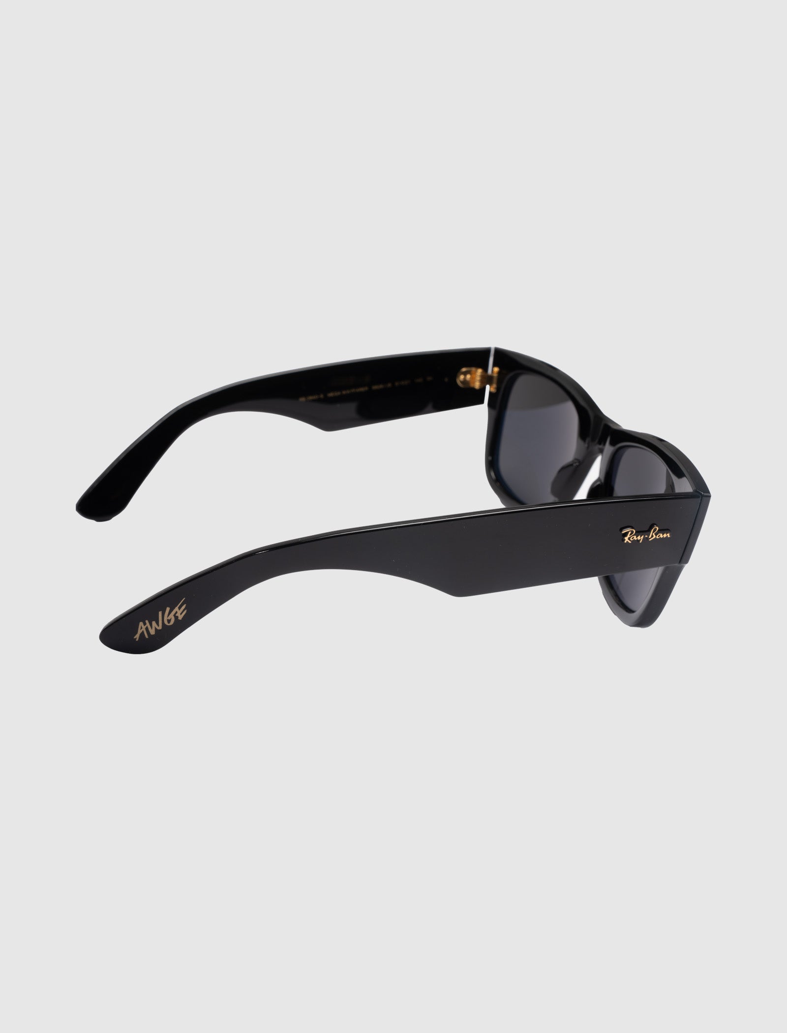High bridge fit polished square frame sunglasses. Tinted UVA/UVB protected. Anti-reflected and anti-scratch. 60s art and 80s art inspired tinted frames. Gold tone engraved logo text and hardware. Graphic text at front.
