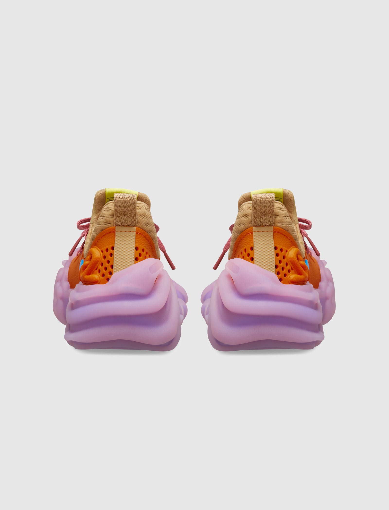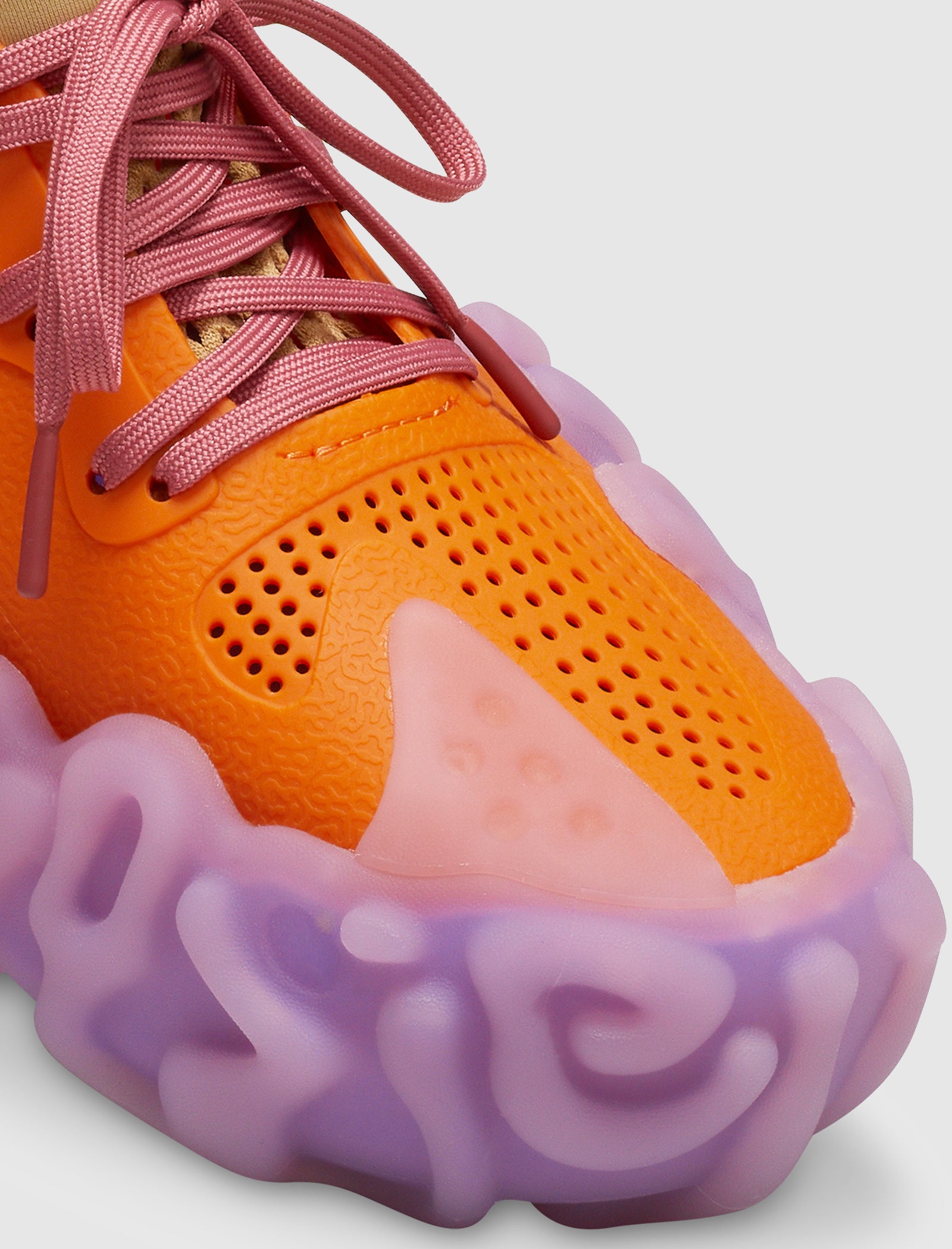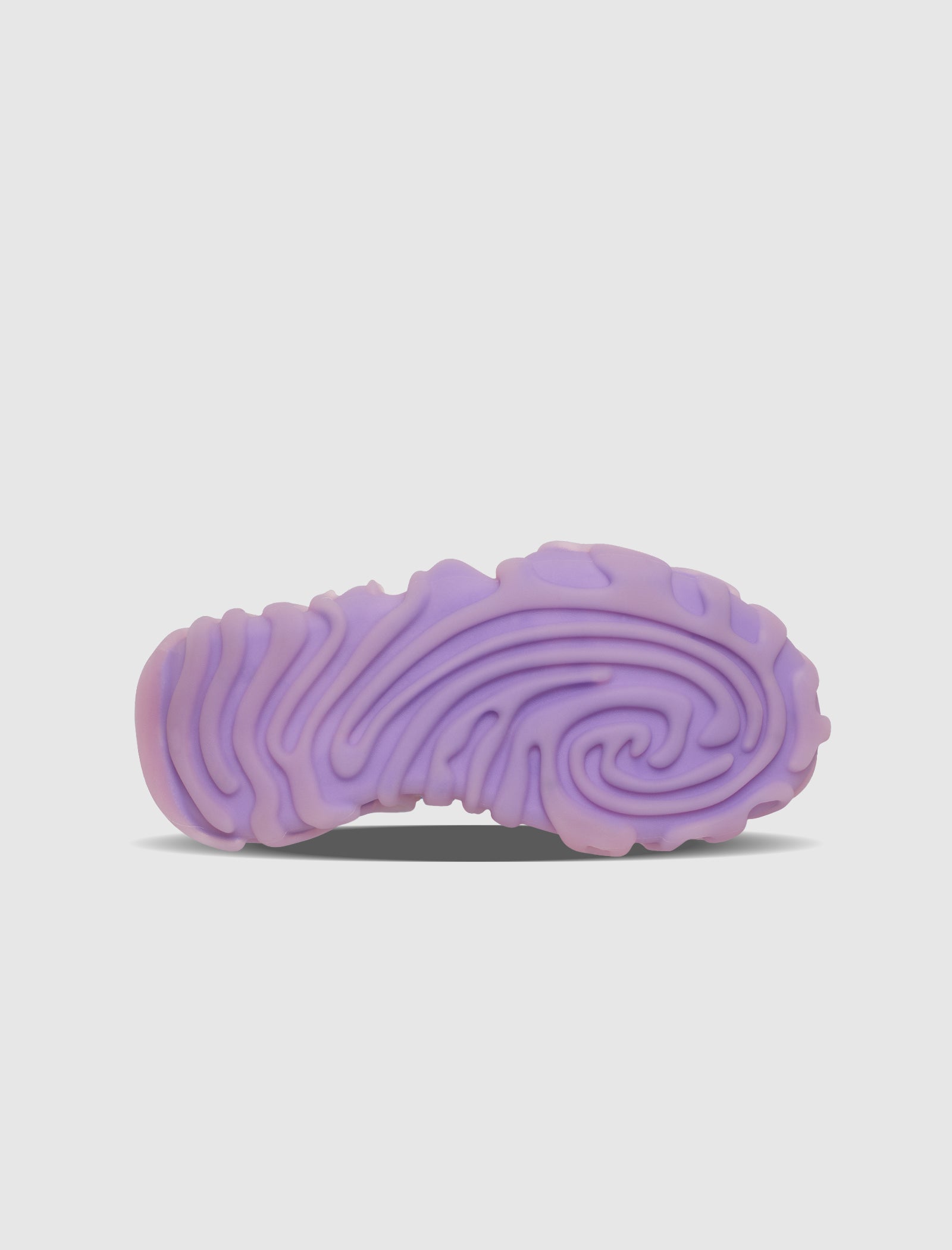 Low top sneakers. Croslite upper with perforations at the toe box, and heel counter. Front lacing. Padded one-piece foot insert. Textured chunky rubber outsole.