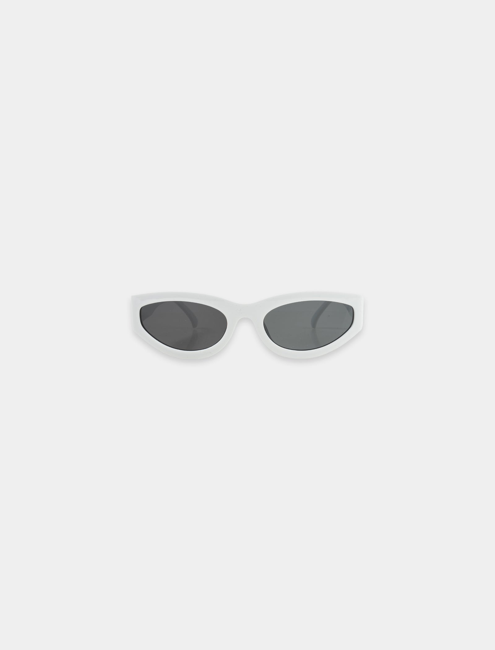 Sunglasses. Resin frame and arms. Tinted lenses with an oval frame. Thick tapered arms with a single hinge on each side. Logo motif on the right arm.