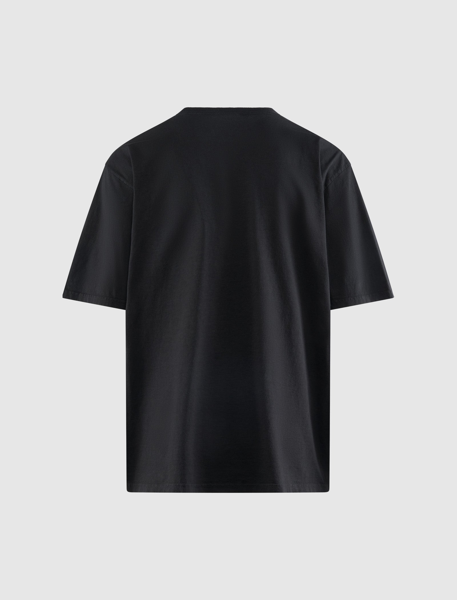 Relaxed-fit mid-weight short sleeve cotton t-shirt. Crewneck. Graphic logo text at chest.