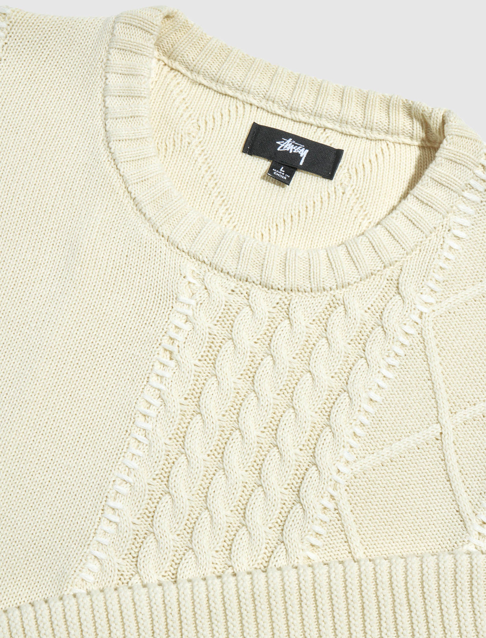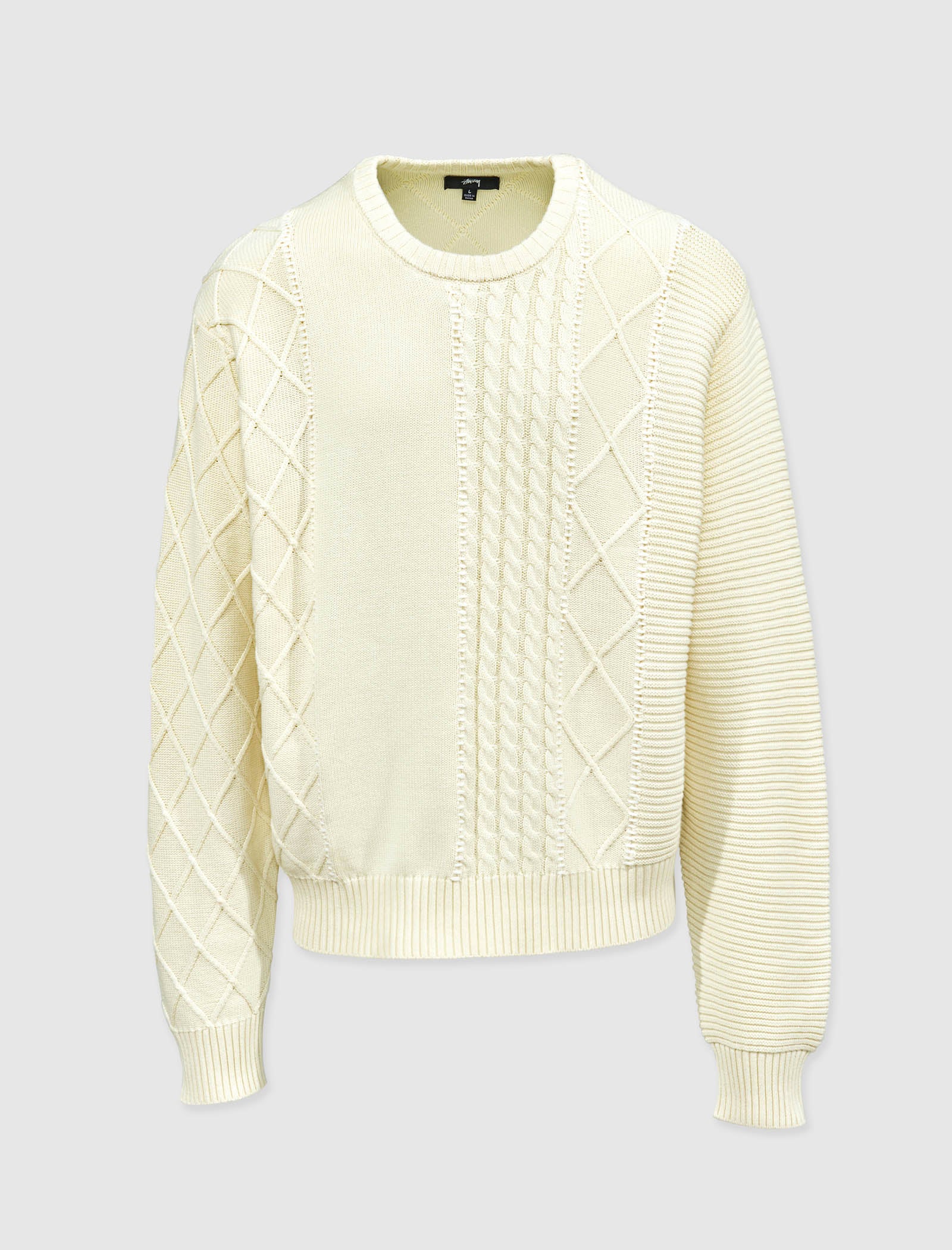 Pullover cable-knit sweater. Crewneck. Knit detail throughout. Ribbed cuffs and hem.