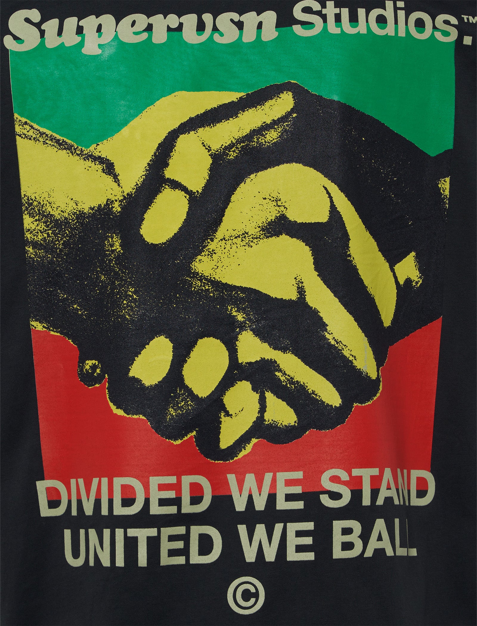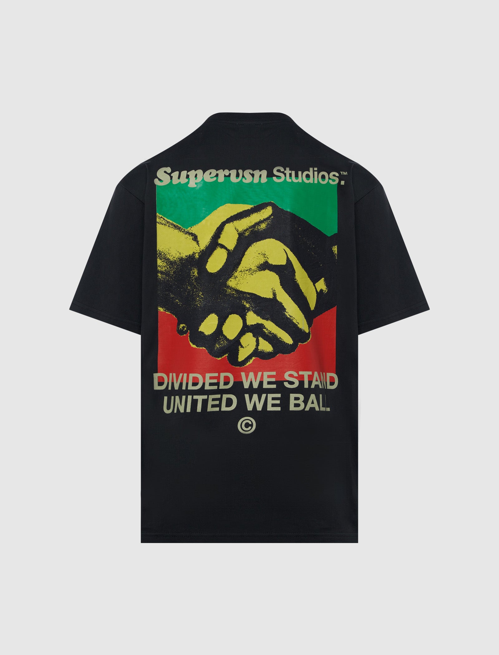 Regular-fit short sleeve cotton t-shirt. Crewneck. Graphic logo text at front and back. Graphic texts and hands print and prints at back.