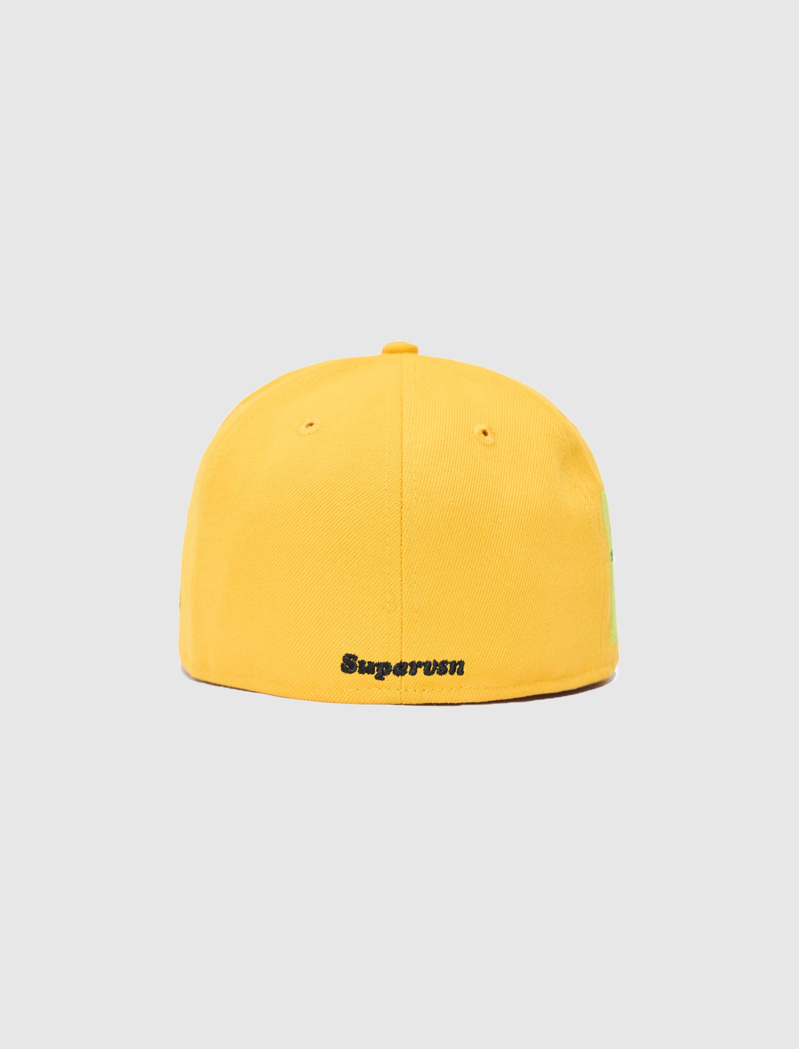 Polyester baseball cap. Flat brim. Embroidered logo and text at front. Embroidered brand patch and logo at sides. Embroidered logo text at back.